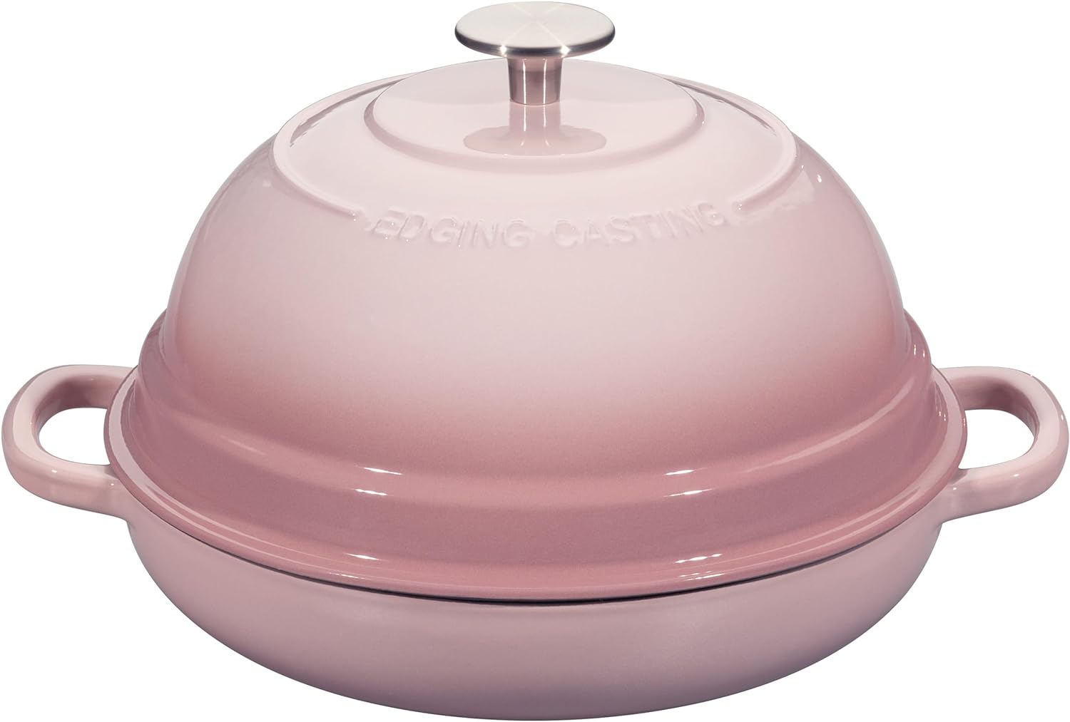 Enameled Cast Iron Dutch Oven Pot with Lid, Round Bread Oven for Homemade Sourdough Bread Baking, 6 Quart, Pink