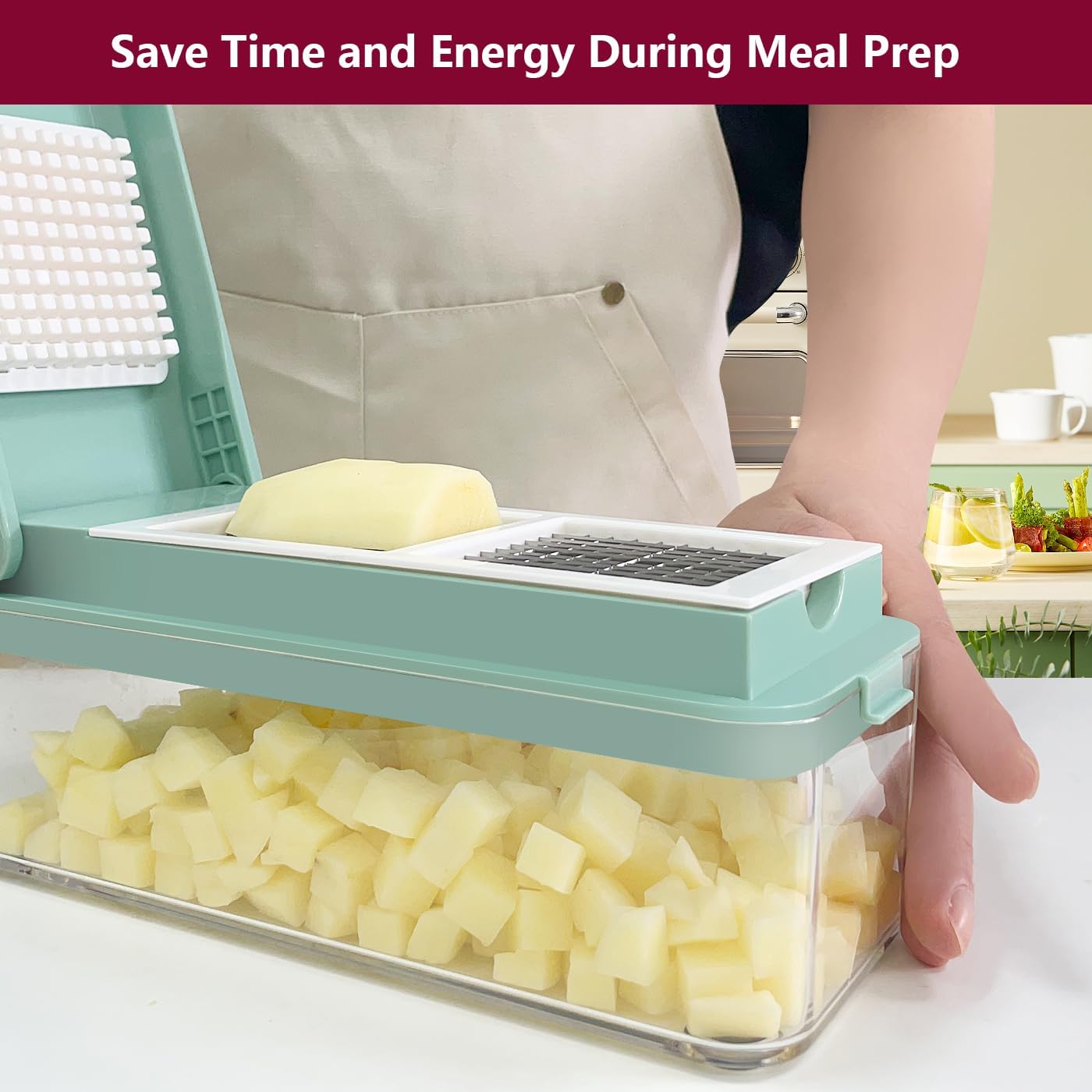 - Clean and Organized Kitchen: With its large container and built-in chop lid, this food chopper allows you to chop vegetables directly into the collection tray, keeping your counters clean and your kitchen tidy.