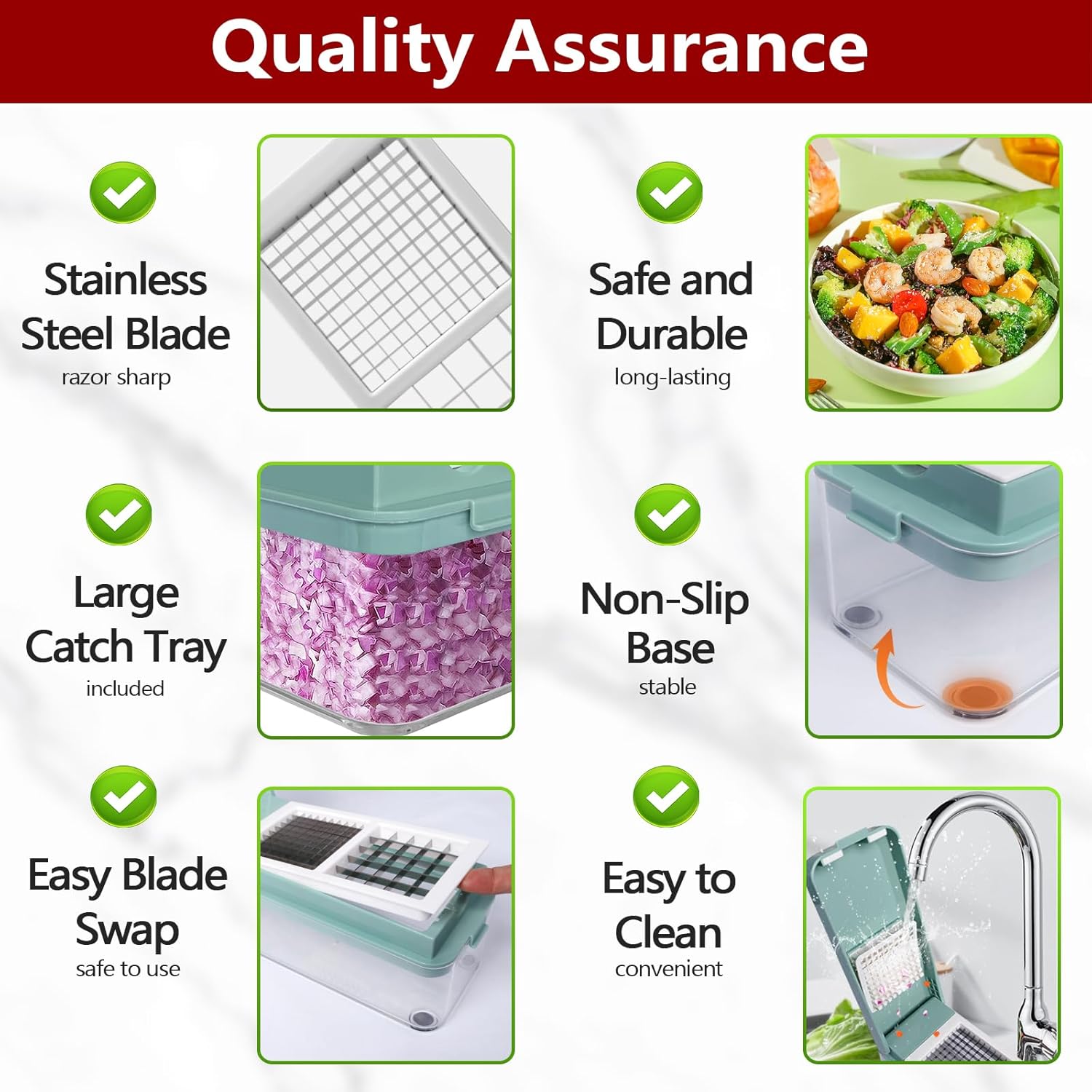 - Durable and Safe to Use: Crafted with high-quality stainless steel blades and BPA-free ABS plastic, this onion chopper is built to last and ensures your safety during meal preparation.
