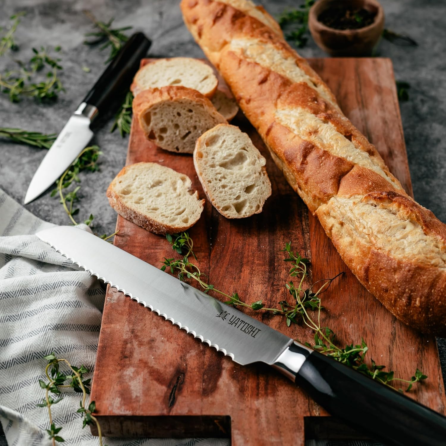 - Set Includes: 1x 8β Chef Knife, 1x 8" Bread Knife, 1x 3.5β Paring Knife