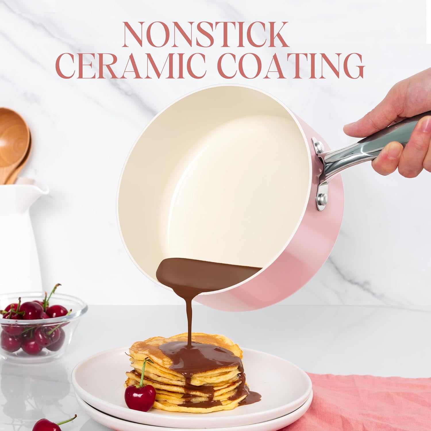 - Durable for Use - Made with high-quality ceramic coating, our sauce pan sets are built to last, known as resistant to scratching, chipping, and peeling.