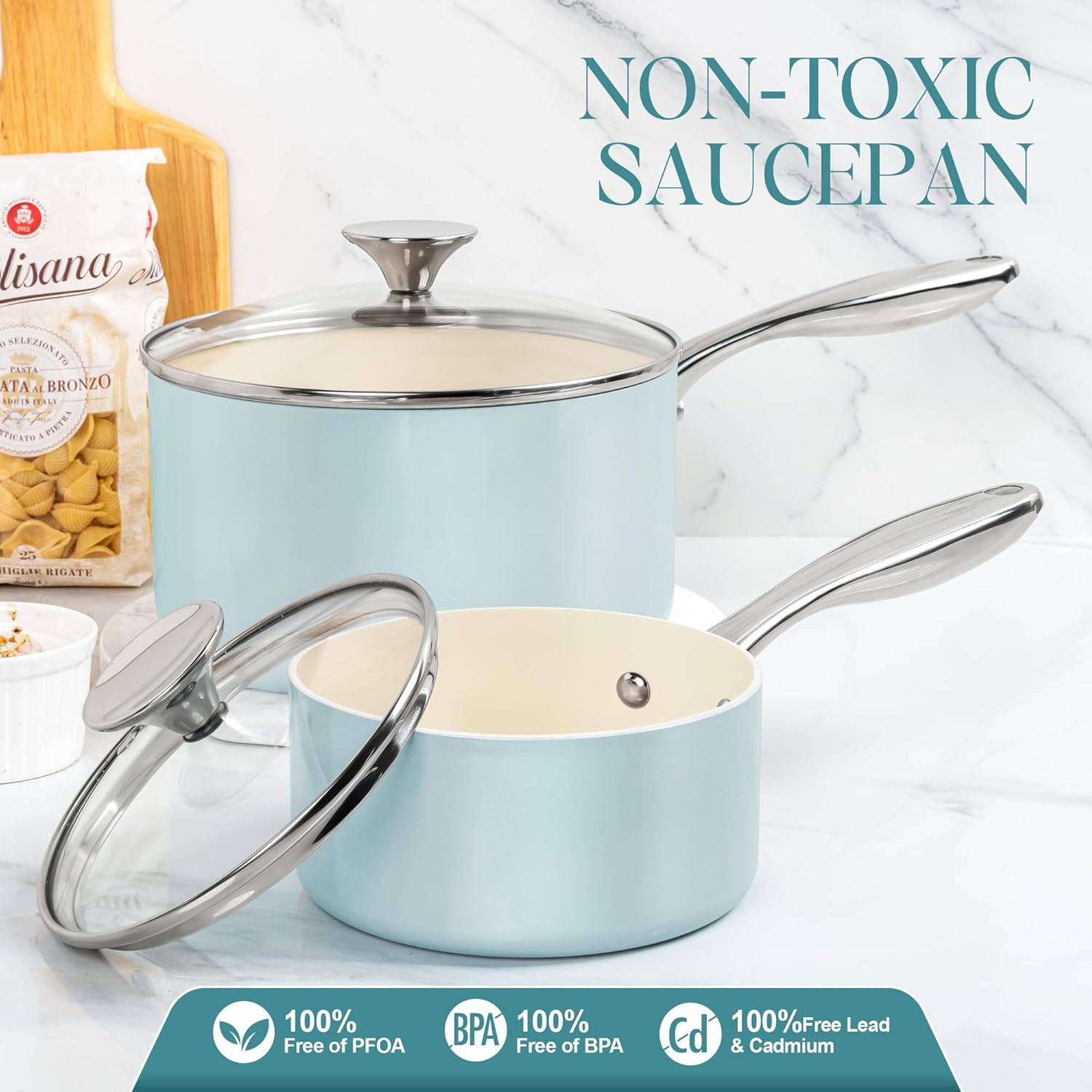- Durable for Use - Made with high-quality ceramic coating, our sauce pan sets are built to last, known as resistant to scratching, chipping, and peeling.