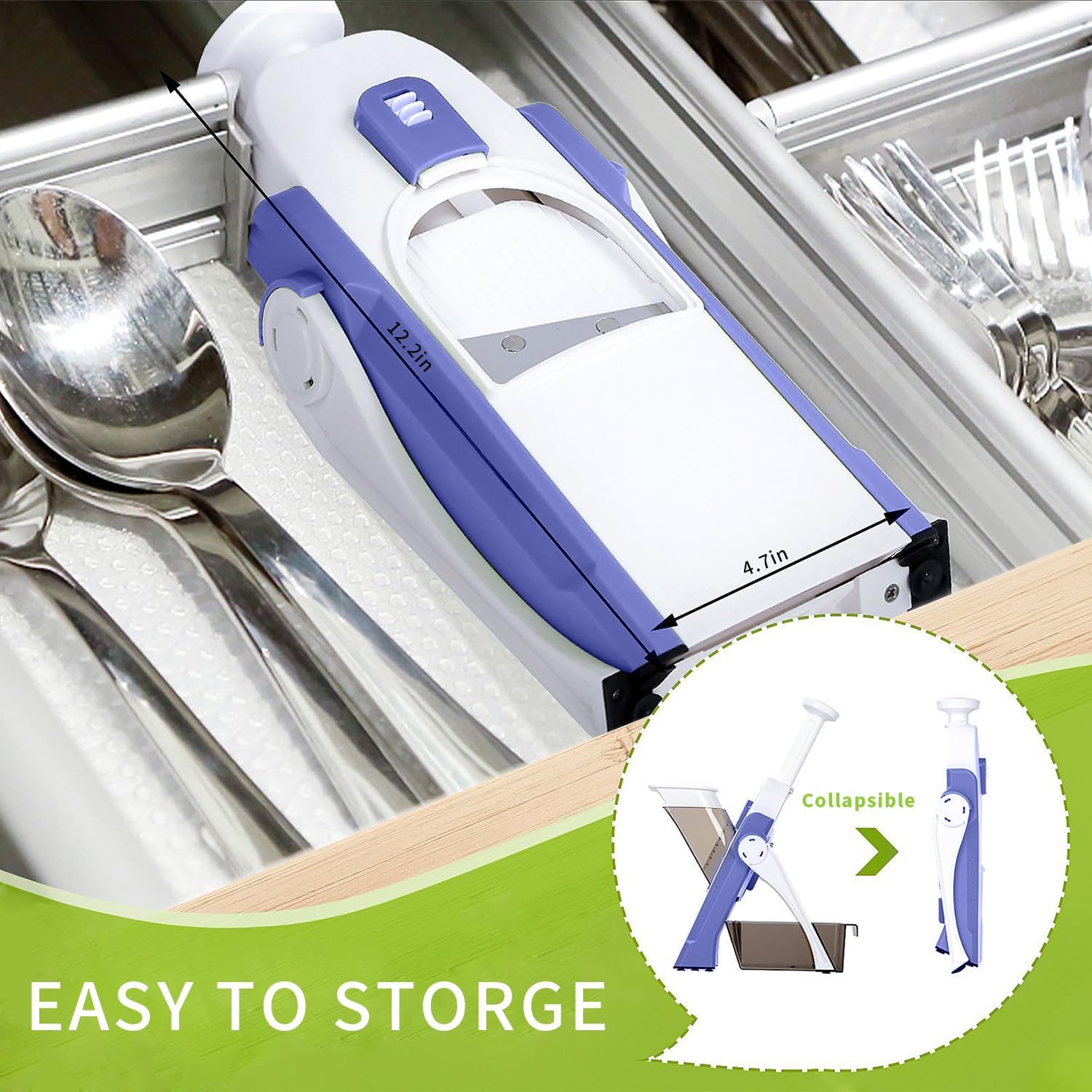 ShanSon Safe Mandoline Slicer,French Fry Cutter,Multifunctional Vegetable Chopper,Mandoline Potato Slicer with 25+ Presets & Thickness Adjuster, Chopping Artifact for Kitchen Meal Prep,Blue