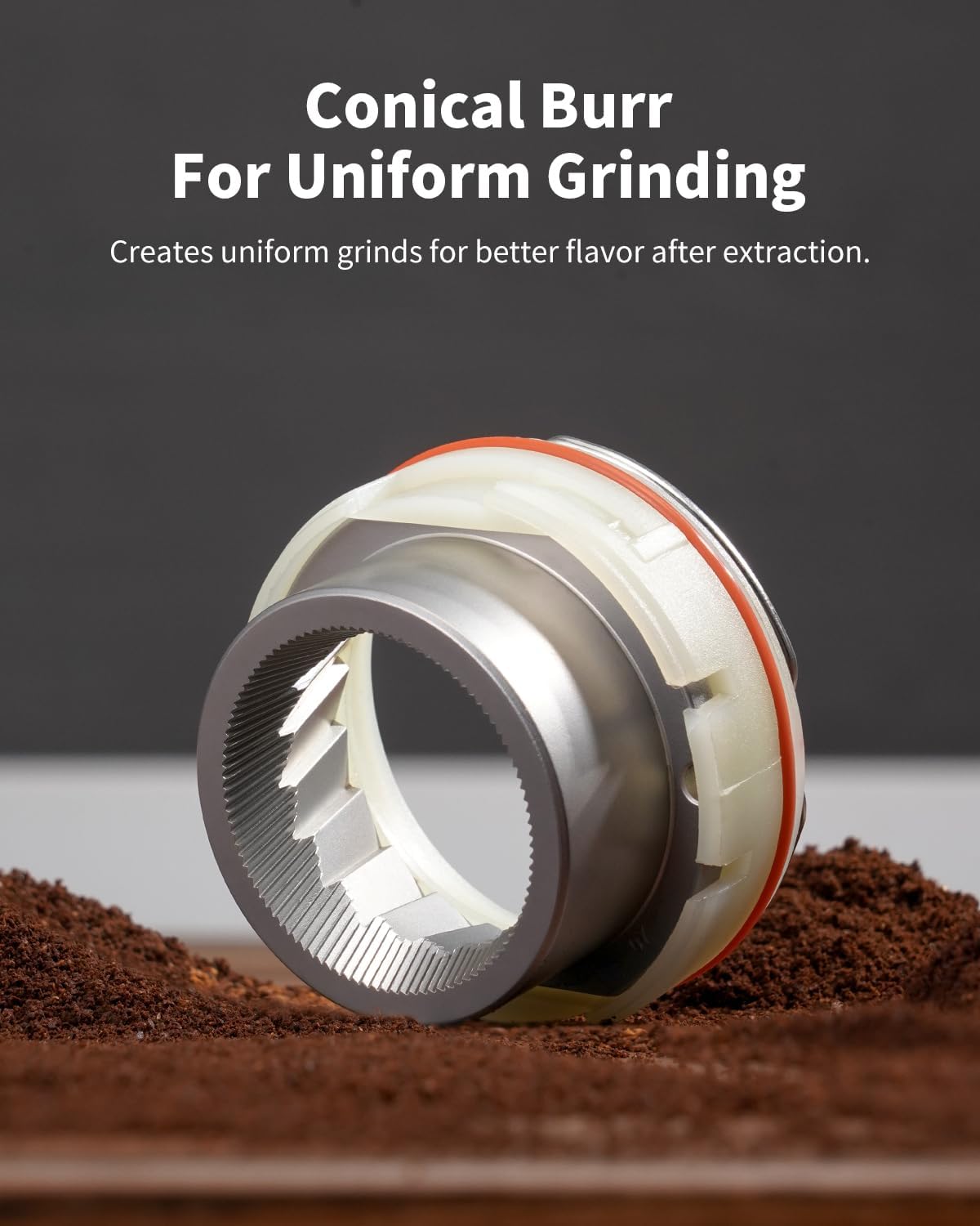 - [Uniform Grinding]-The SHARDOR coffee grinder is made of stainless steel conical burr, grinds uniform coffee grounds, generating less heat and preserving more coffee bean essential oils to extract the best flavor.