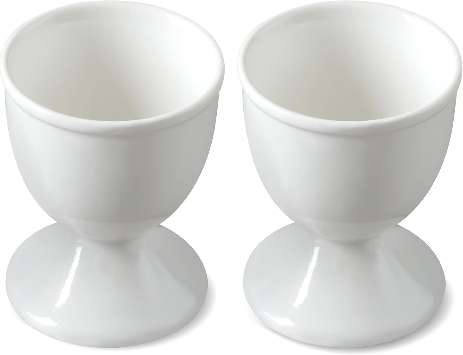 Cinf Ceramic Egg Cup Set of 2 White Porcelain Holder Breakfast Boiled Cooking Easy to Clean Childhood Memories Kitchen