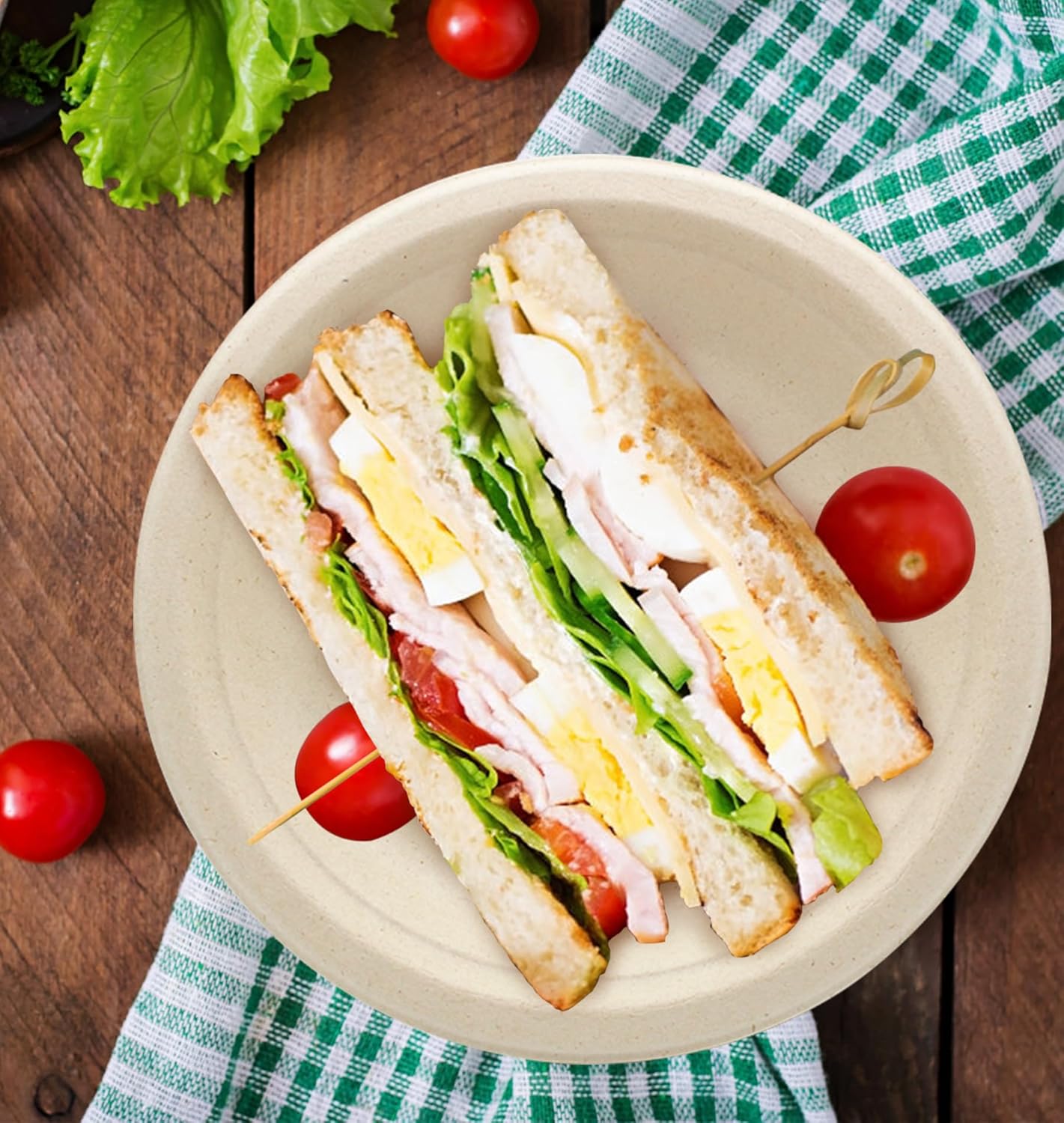 - ECO-FRIENDLY PAPER PLATE: Our disposable plates are made from recycled/repurposed sugarcane, which are 100% biodegrable for composting at easy disposal. Besides, no cutting the treesl, making such compostable plates are good for worldwide enviroment.
