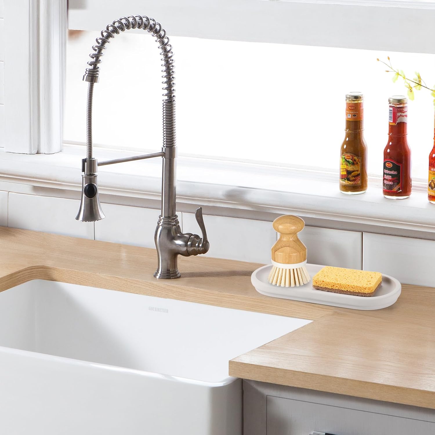 - Thickened Tray for Increased Sturdiness: This stunning kitchen sink organizer is crafted from 100% natural diatomaceous earth, sturdy, sustainable, and compostable. Additionally, the thicker construction offers increased durability and water absorption.