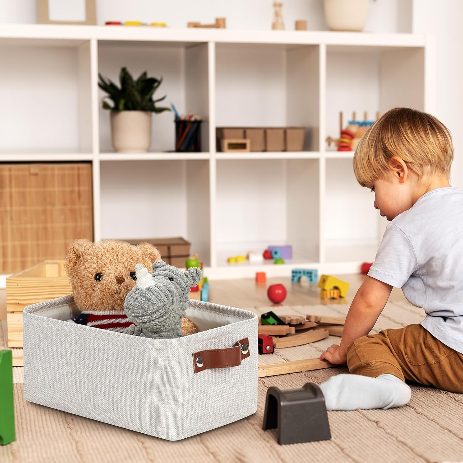 - Premium Material: These storage baskets are made with premium-quality fabric and thickened EVA. Soft&comfortable, sturdy&resistant, lightweight, and easy to use over time. The small collapsible storage bins are more suitable for storing towels and baby clothes.
