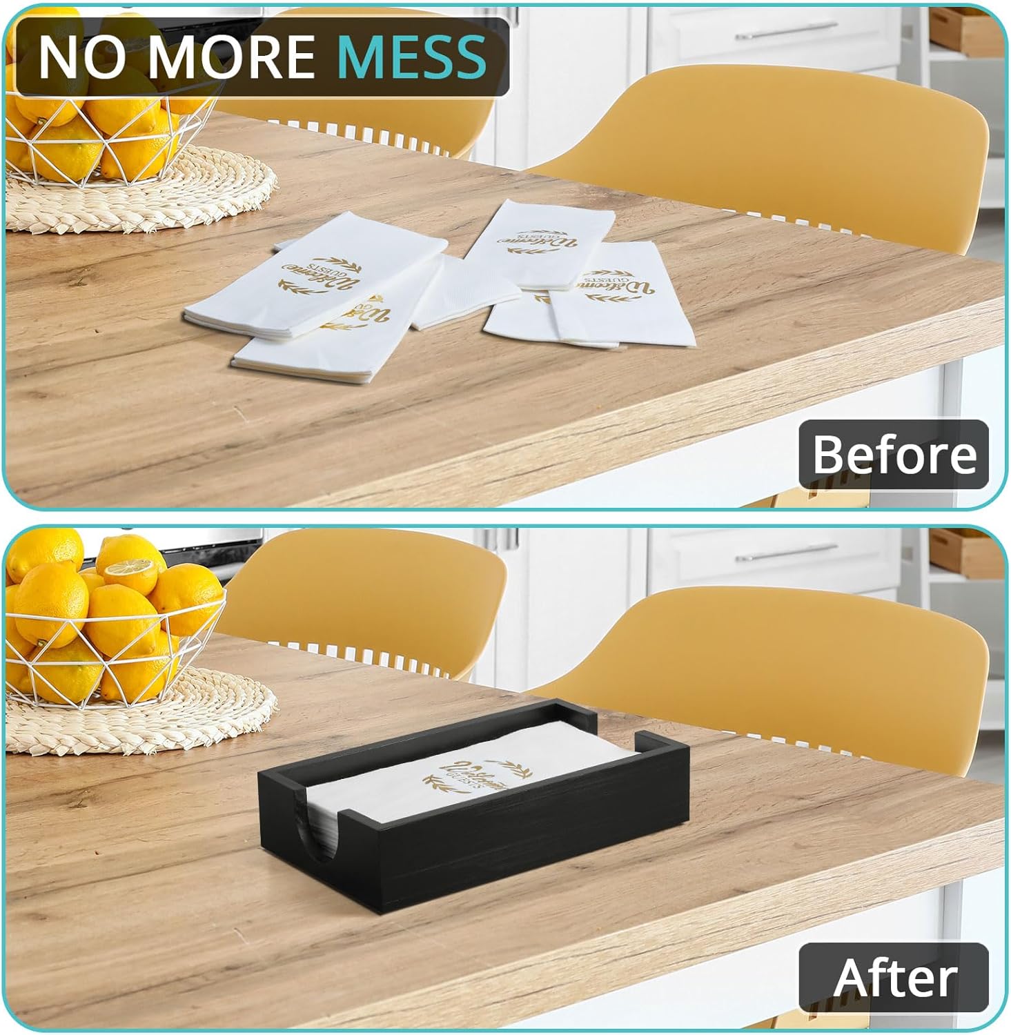 - Complementing Home Decor: The bathroom napkin holder tray is an easy addition to your tabletop dรฉcor. You can keep napkins neatly presented and always within reach in your guest bathroom, powder room, dining room, on your coffee table, kitchen countertops for daily use. In addition, this hand towel holder adds style to any dining setting, whether casual or formal.
