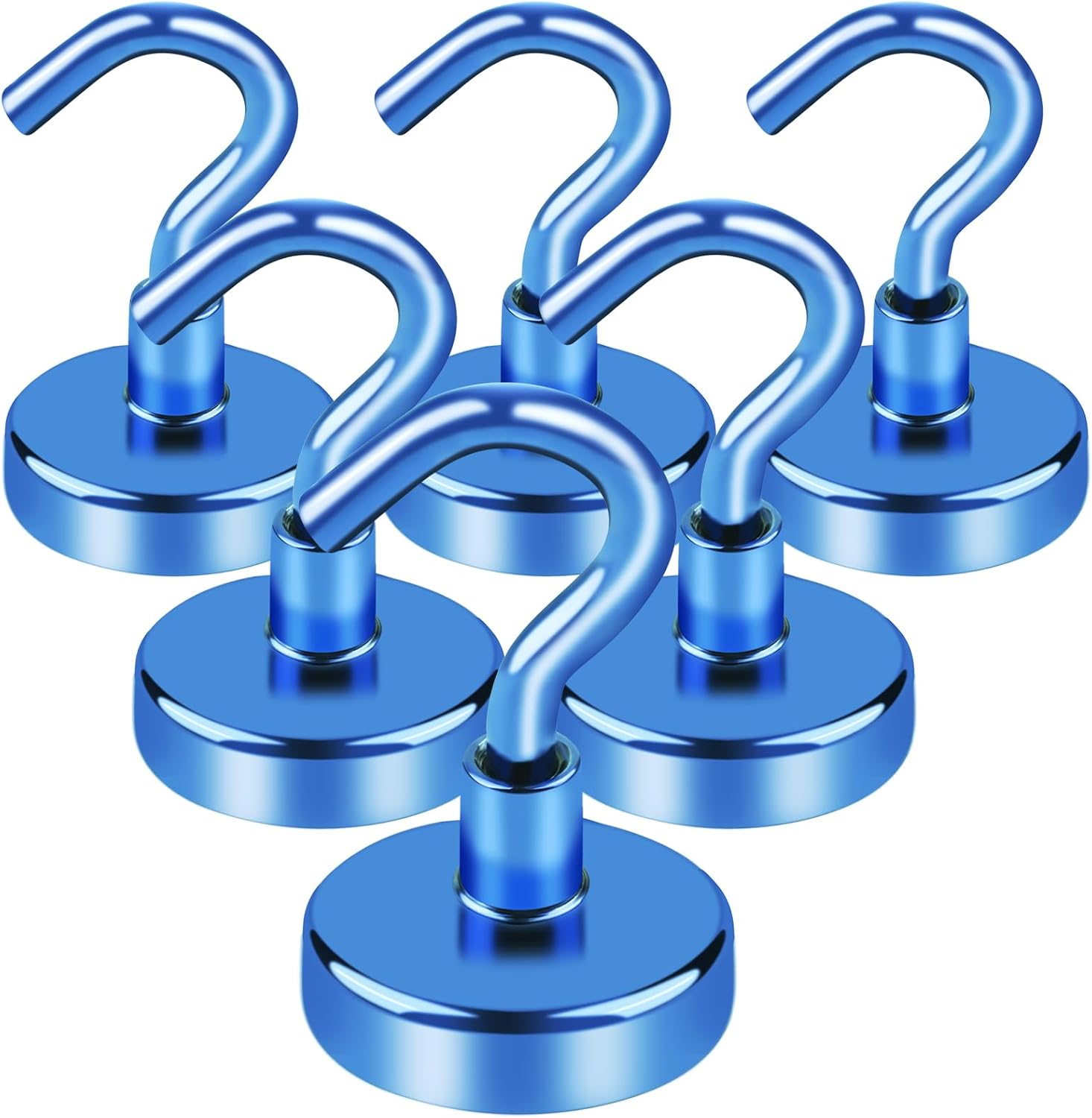 LOVIMAG Cruise Essentials, 40Lbs Blue Cruise Magnets, Magnet Hooks for Cruise Cabin,Strong Magnetic Hooks for Hanging Cruise Lanyard, Fridge, Ceiling, 6 Pack