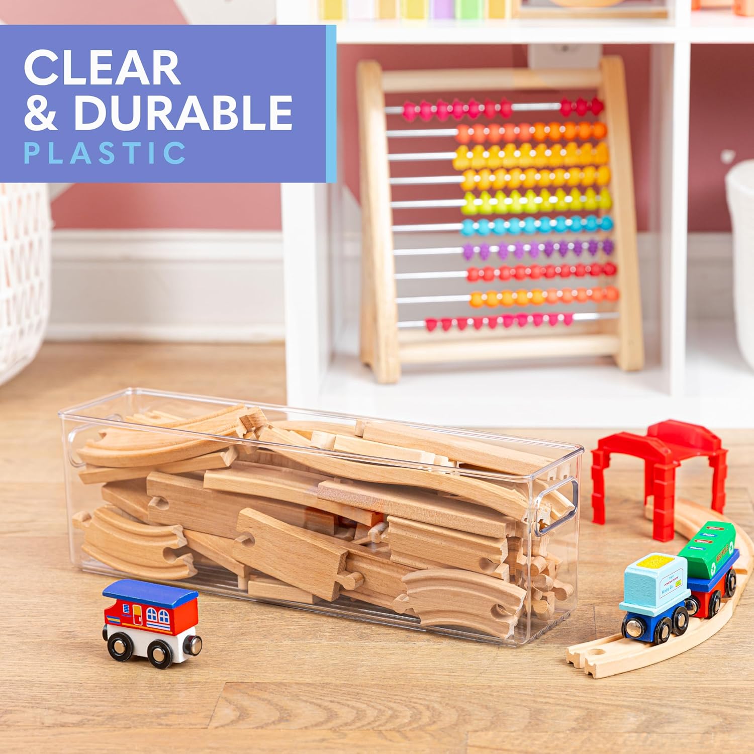 Plastic Food Storage 6 Pack Clear Container Bin with Handles for Organizing Kitchen, Pantry, Fridge, Freezer, Pantry,Bathroom. 16"x4"x5"