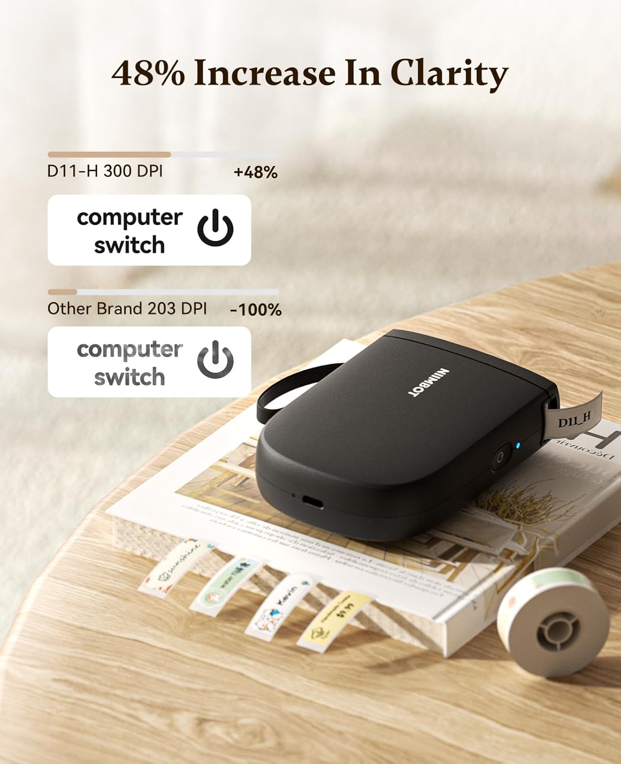 NIIMBOT Label Maker Bluetooth Mini Label Printer D11 2024 Version, Portable Label Maker with Tape Thermal Sticker Small Labeler, 300 DPI High Clearity Rechargeable, Black