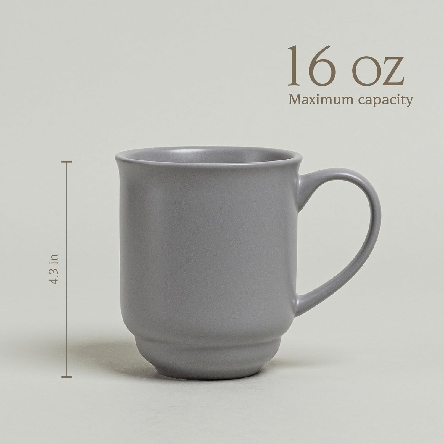 over&back Rim Stoneware Coffee Mugs - 4-Piece Mug Set - Enjoy the Perfect Cup of Coffee, Tea, Latte, and More - Semi-Matte Charcoal - 16oz