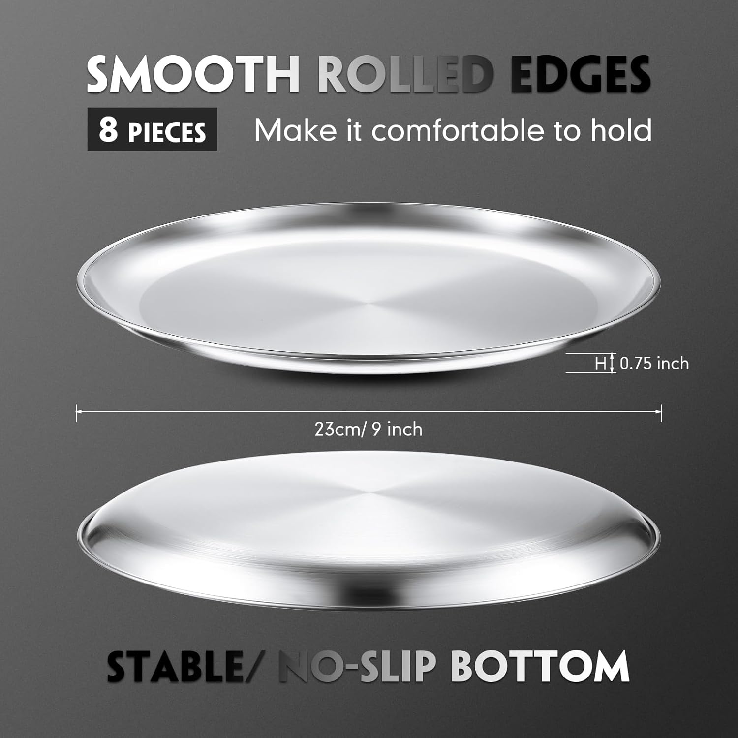 - Package Contents: there are 8 pieces of stainless steel plates in silver color, the sufficient amount can meet your daily use and replacement. not just for oven use, our pizza pans can also be applied for serving your delicious creations. invest in the Stainless Steel Pizza Pans today and experience the ease of baking and serving your favorite pizza creations