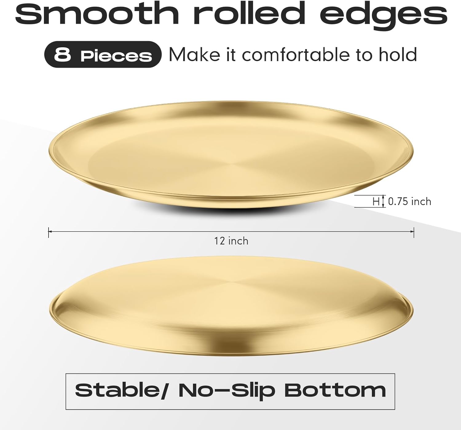 - Package Contents: there are 8 pieces of stainless steel plates in gold color, the sufficient amount can meet your daily use and replacement. not just for oven use, our pizza pans can also be applied for serving your delicious creations. invest in the Stainless Steel Pizza Pans today and experience the ease of baking and serving your favorite pizza creations