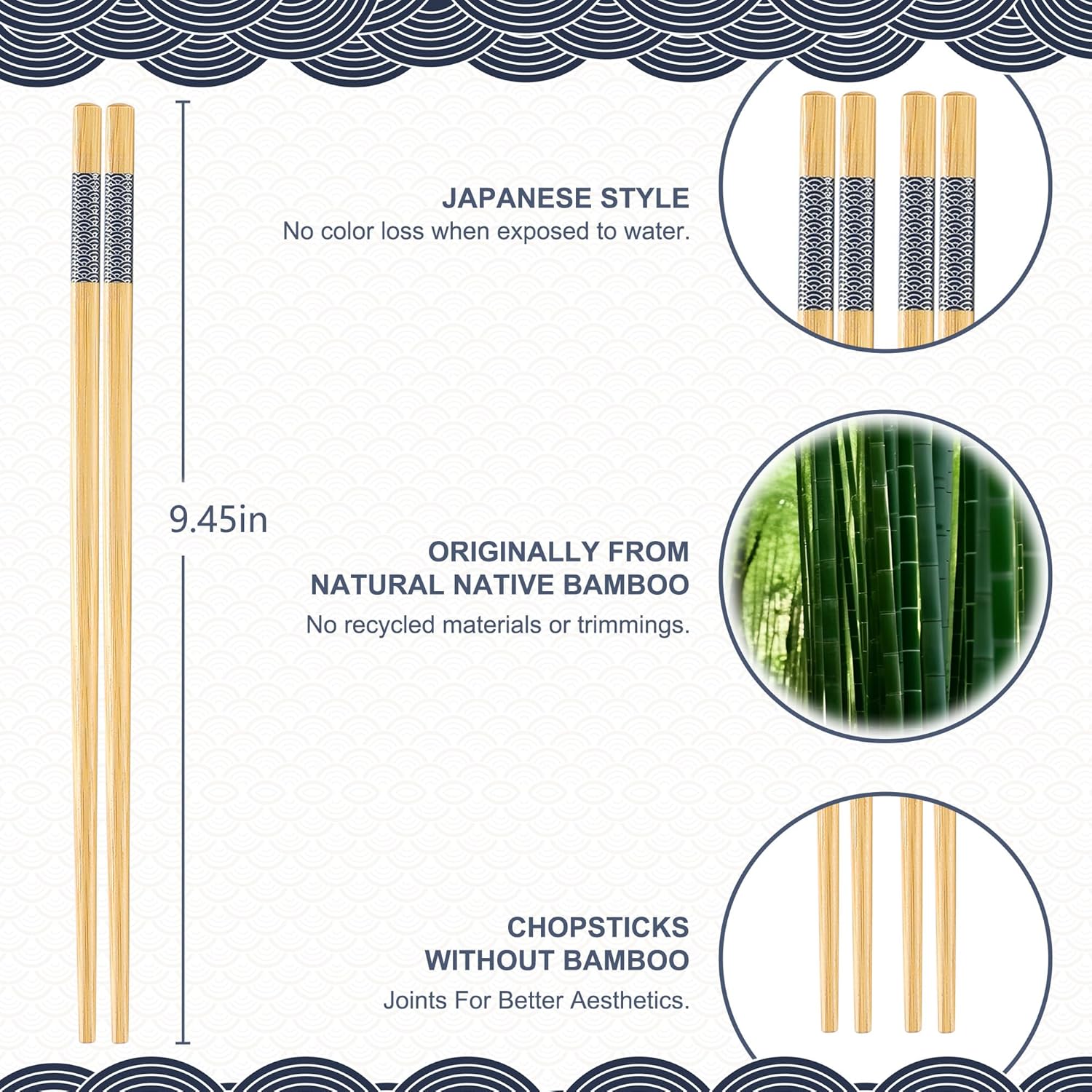 - 【CHOPSTICKS FOR BEGINNERS】Bamboo chopsticks are 9.45 inches,suitable for all hand sizes, easy chopsticks for adults, finely polished, food won't slip off.