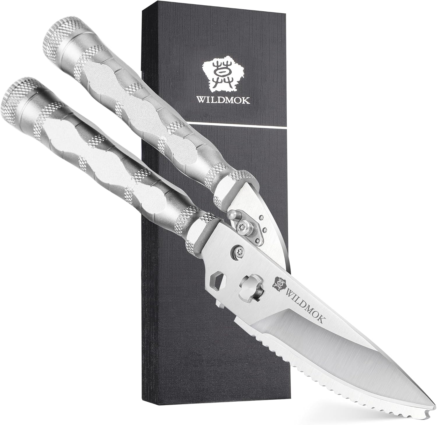 WILDMOK Heavy Duty Poultry Shears - 8.5 Inch Multi-function Stainless Steel Poultry Outdoor Shears, Ultra Sharp Kitchen Scissors for Outdoor Camp, White
