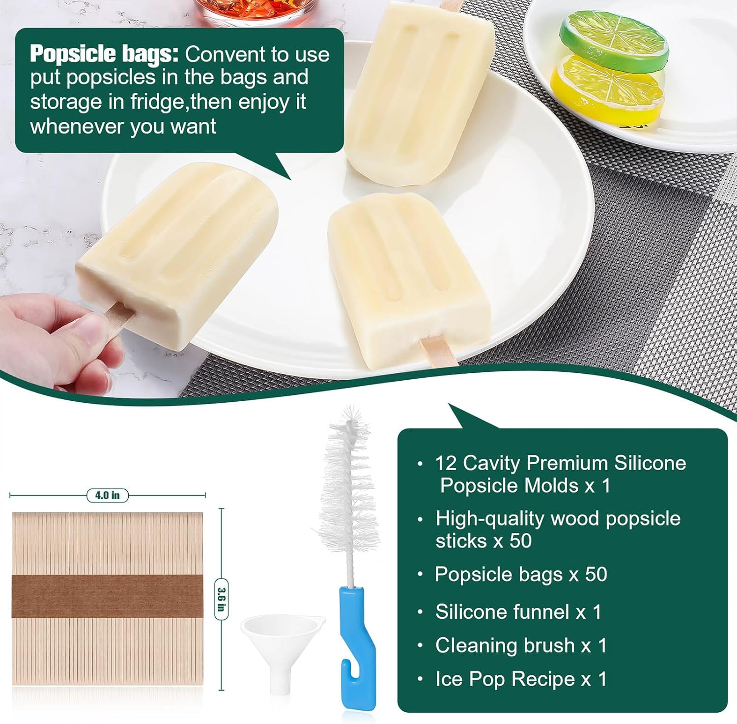 - 🍍【DIY Innovation Playground】To spark your creativity, we've thoughtfully included 50 popsicle sticks, 50 bags, 50 ties, and a funnel. Now, unleash your imagination with these accessories, customizing unique popsicle flavors for a summer filled with cool, personalized treats. Whether it's a family gathering, outdoor BBQ, or kids' party, homemade popsicles will surely make this summer unforgettable!