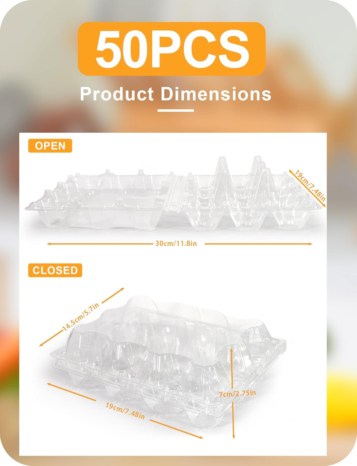 - 1 Dozen Egg Carton: Each empty plastic egg carton cheap bulk measures 7.48 x 5.7 x 2.75 inches; it is the perfect size to hold up to 12 count eggs, fit for bantam egg or medium egg