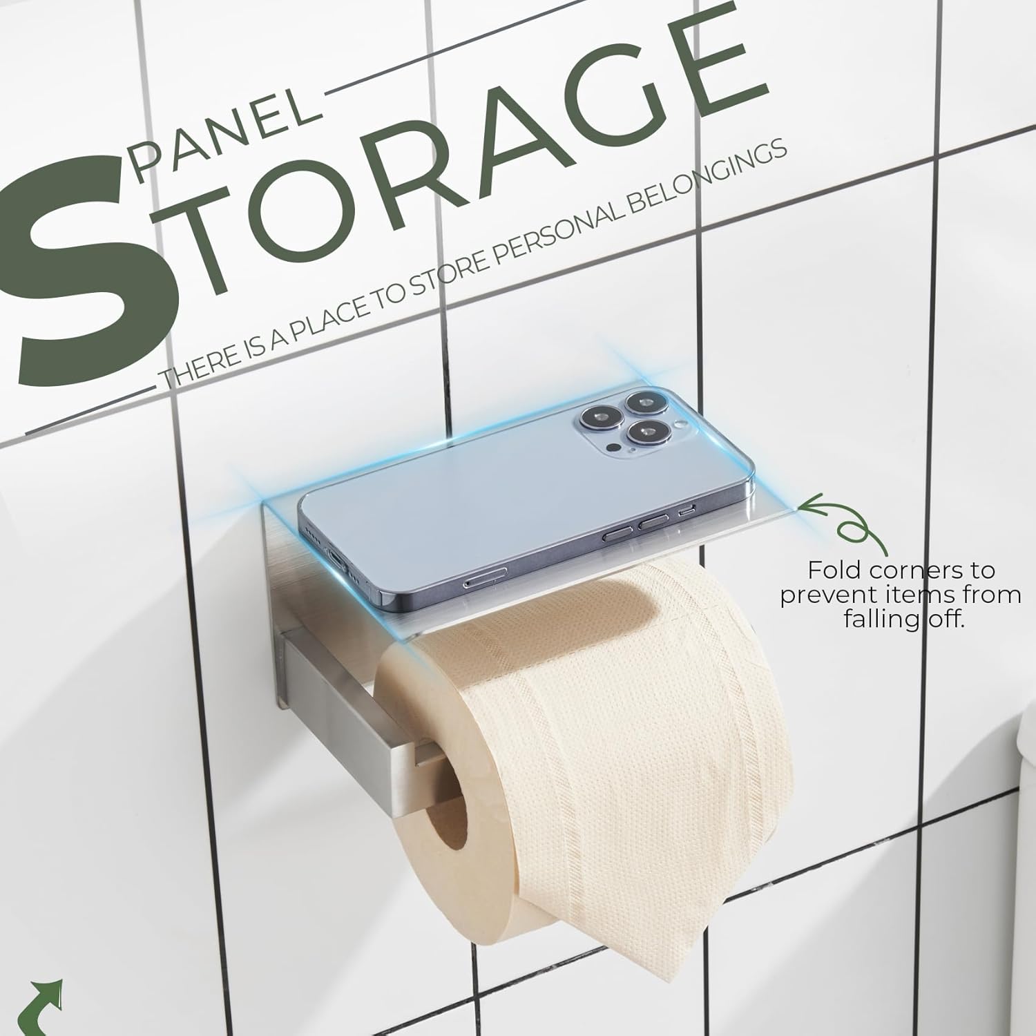 KOKOSIRI Toilet Paper Roll Holder Brushed Nickel Toilet Paper Holder with Shelf Stainless Steel Bathroom Dispenser Wall Mounted, B2010BR