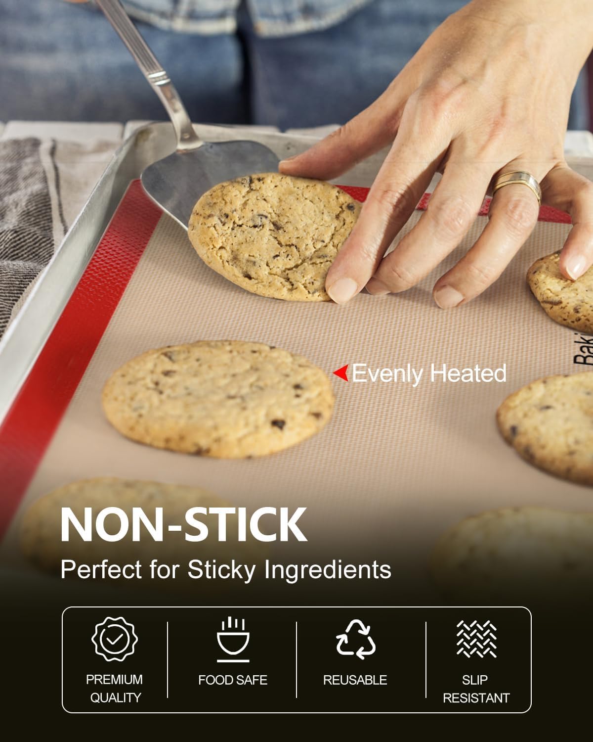 - Non-Stick Surface: The textured silicone cookie sheet releases cookies effortless like magic! Oil-free baking for perfect macarons, candies, and sticky caramel with zero residue left behind and bakes evenly without burnt cookie and caramel