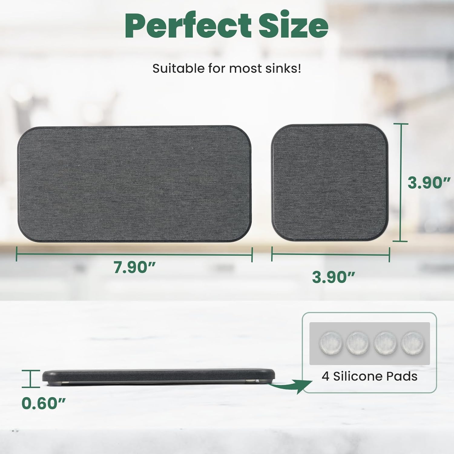 - ANTI-SLIP - The silicone feet enhance the grip of the absorbent stone bar coasters, keeping them stable on countertops. This design enhances air circulation, quickens water evaporation, and prolongs the life of the stone sink tray