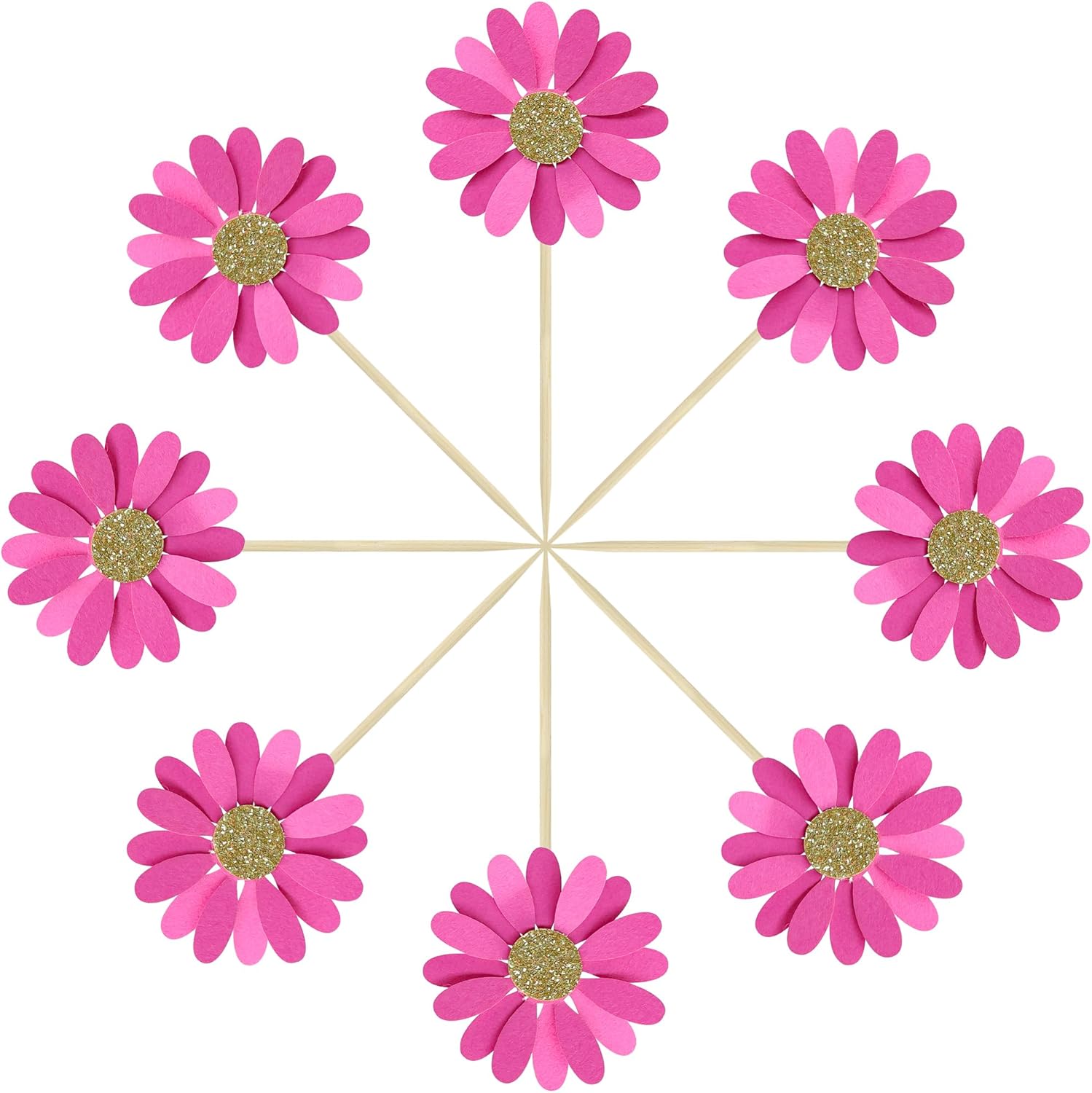 - 【Upgrade Quality】: 24Pcs Daisy Flower Cupcake Toppers are made of 300g card stock and 100% food grade bamboo stick, not easy to deform and fade, smooth edges without burrs, makes Daisy Flower cupcake toppers give you a wonderful visual enjoyment. It is durable enough for long lasting use.