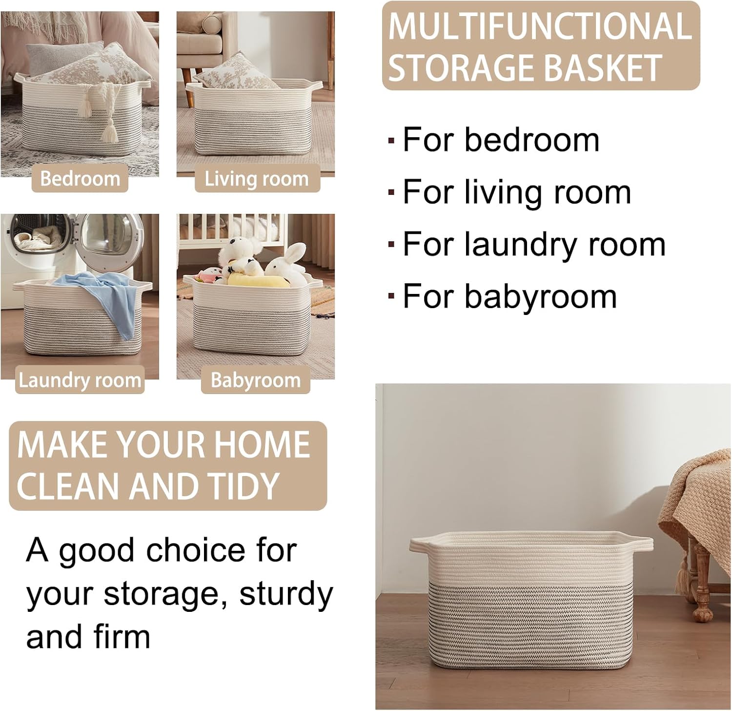 - Washable Woven Storage Basket: This rope baskets for storage can be washed by hand or machine with gentle detergent. If machine washed, please put them into a laundry bag. NOTE: These large basket for blankets are folded when shipping, but it will turn back to its elegant shape quickly if you fill it with some towels or clothing, and iron is great idea to remove the creases