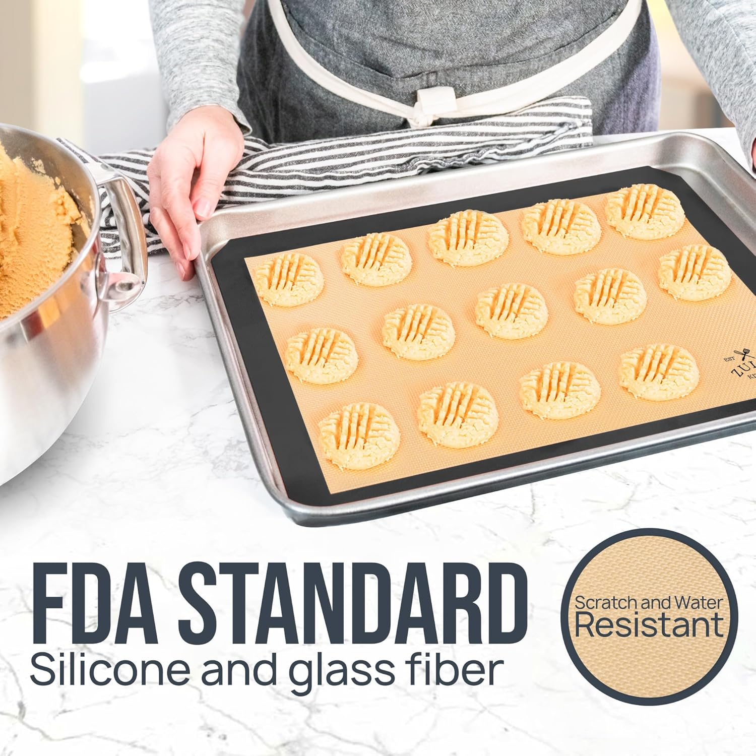 - STRONG AND STURDY: For a smooth baking experience, we have built these baking mats with food-grade silicone that is strong, flexible, and can withstand temperatures up to 480° F. The sturdy material makes these water and scratch resistant mats safe to use in ovens, microwaves, and even freezers.