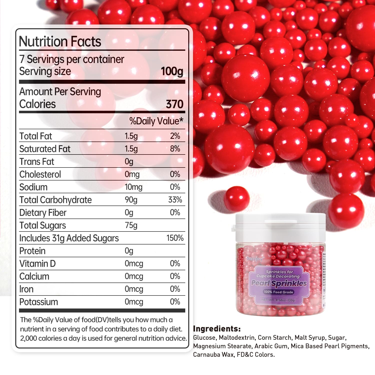 Dazzjoy Edible Christmas Red Pearl Sugar Sprinkles, Mix Size, 4.58oz, Red Sprinkles for Cupcake Decorating, Baking Cake Decorations, Wedding Party Valentines Easter Supplies