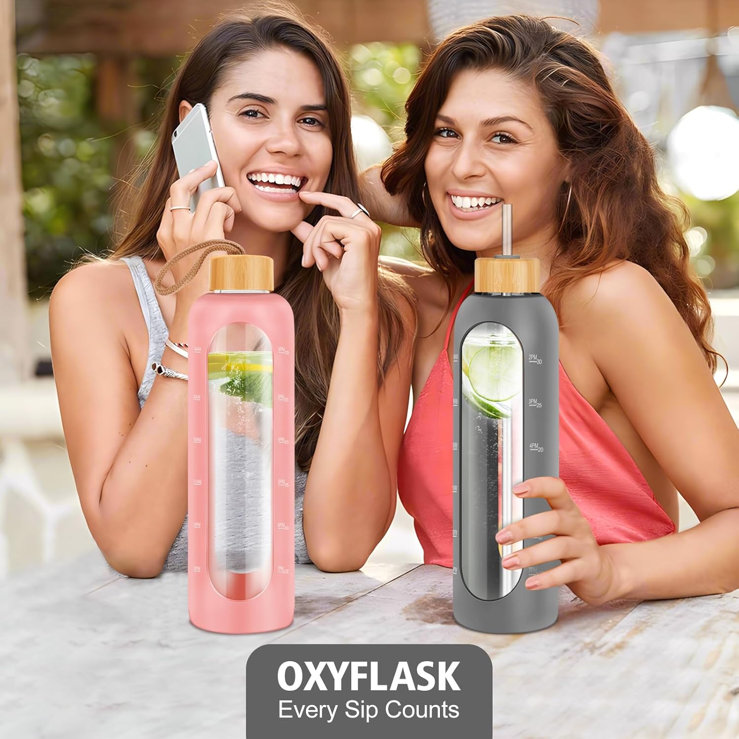 - TRACK DAILY HYDRATION GOALS: Stay on top of your water intake with this glass water bottle with time marker, featuring clear volume indicators. Whether you're at work or exercising, itβs a simple, effective tool to meet your health and hydration goals.