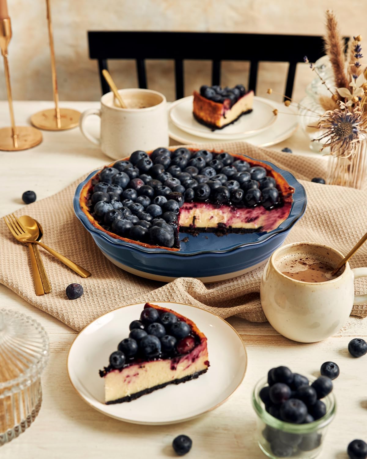 NUTRIUPS 10 Inch Pie Baking Dish, Round Baking Pie Dish for Kitchen, Pie Plate for Baking Oven Safe (Blue)