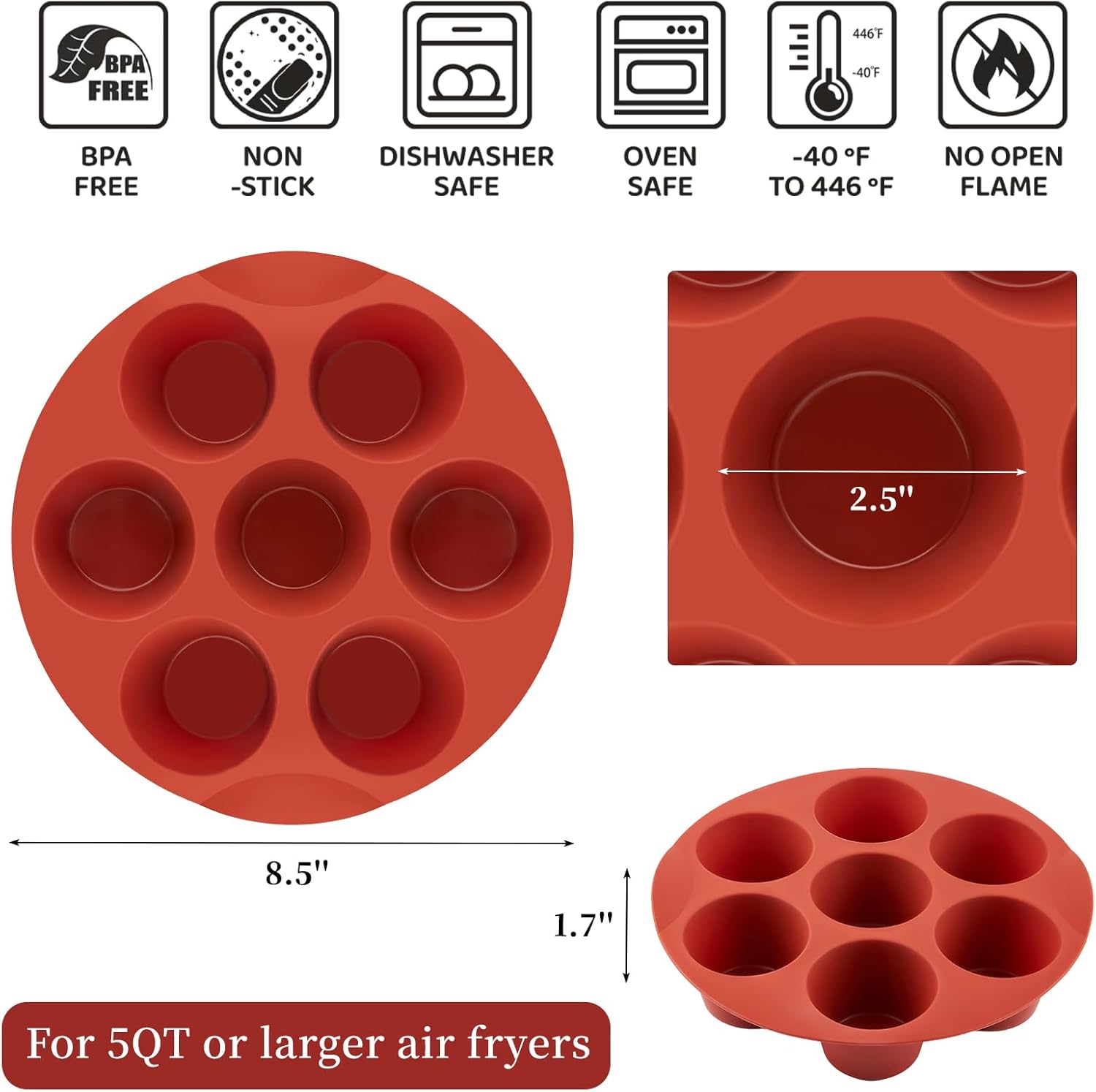 - Safe Material: This air fryer muffin tray is made of food grade silicone, BPA free, safe, odourless and can withstand high temperatures up to 446 Β°F.