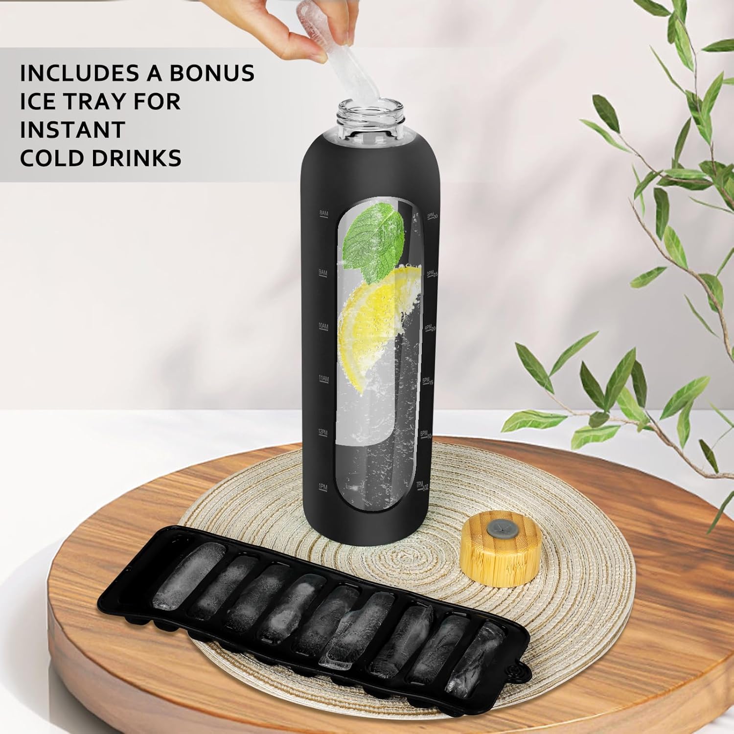 - TRACK DAILY HYDRATION GOALS: Stay on top of your water intake with this glass water bottle with time marker, featuring clear volume indicators. Whether you're at work or exercising, itβs a simple, effective tool to meet your health and hydration goals.