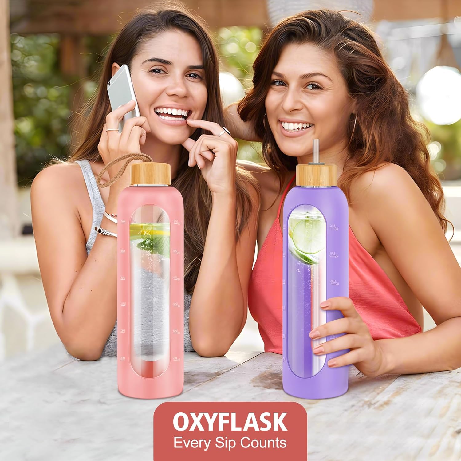 - TRACK DAILY HYDRATION GOALS: Stay on top of your water intake with this glass water bottle with time marker, featuring clear volume indicators. Whether you're at work or exercising, itβs a simple, effective tool to meet your health and hydration goals.