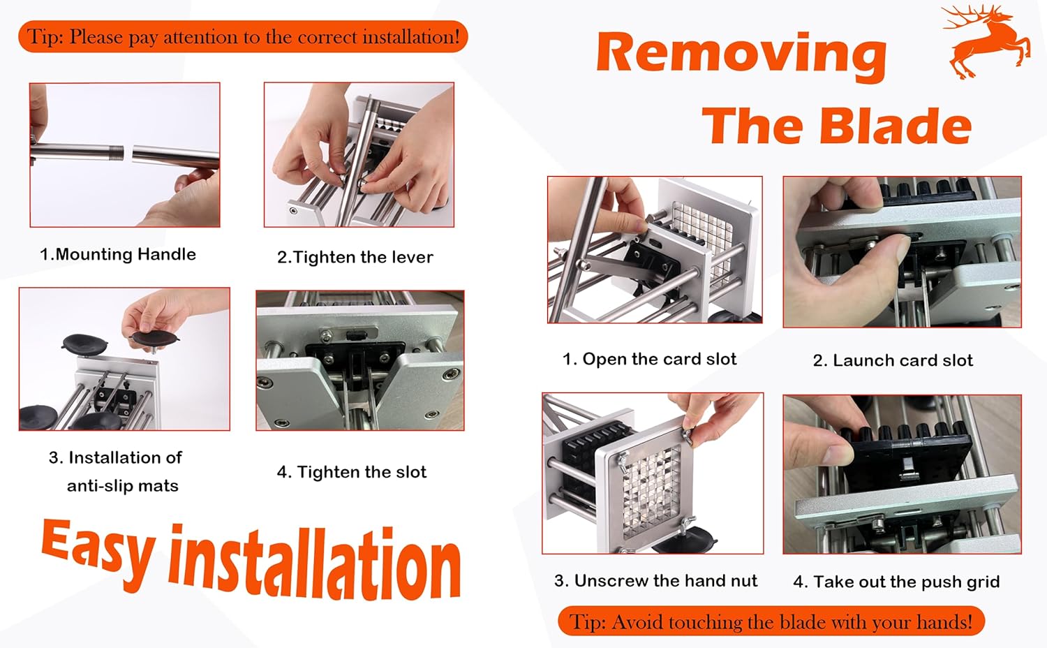 - EASY TO OPERATE: After simple assembly, just put the potatoes in and press down the handle to get the same thickness of potato fries, no effort at all