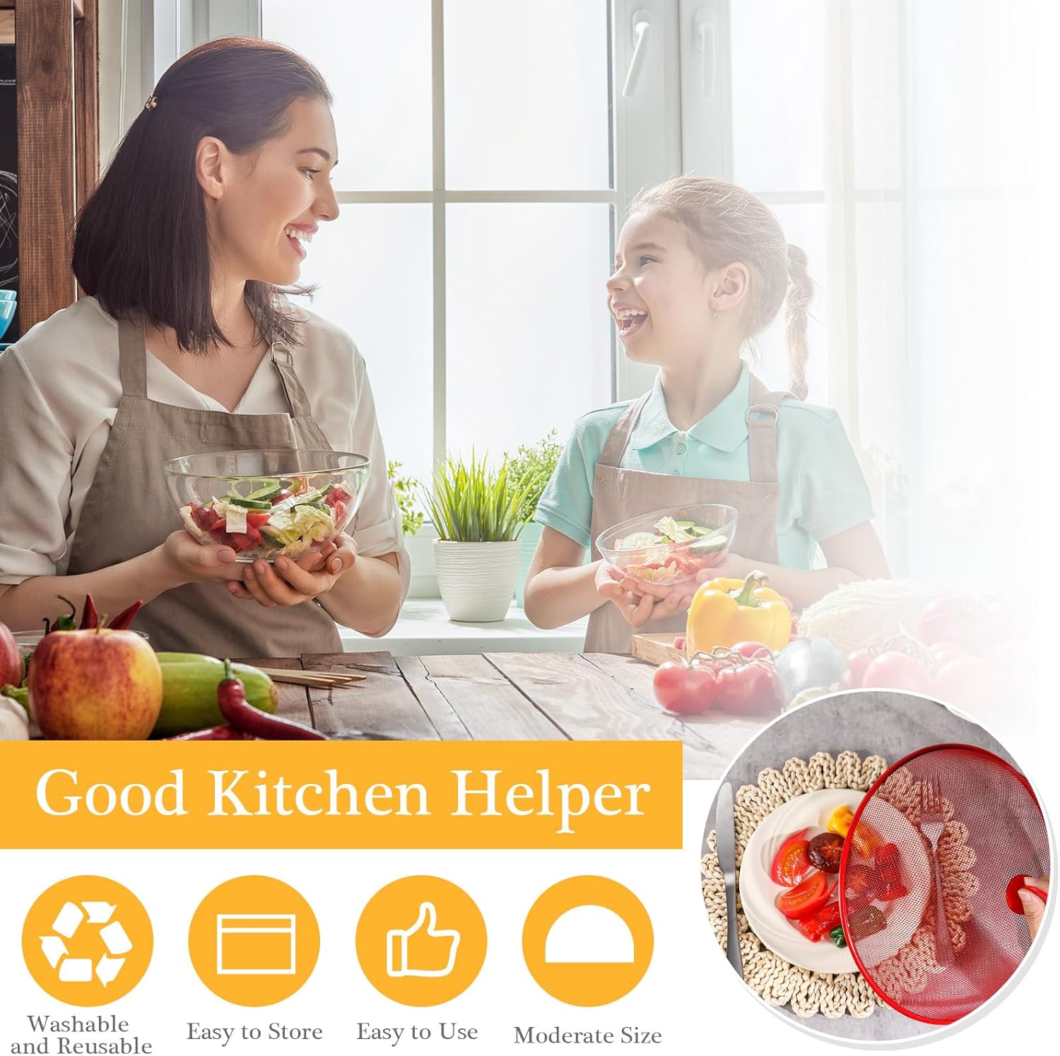 Gerrii 6 Pcs Metal Mesh Food Cover Outdoor Mesh Food Tents Dome Screen Plate Covers for Dinner Plates Reusable Fruit Fly Nets Picnic Food Umbrella for Table, BBQ, Camping, Party (Red,11 Inch)