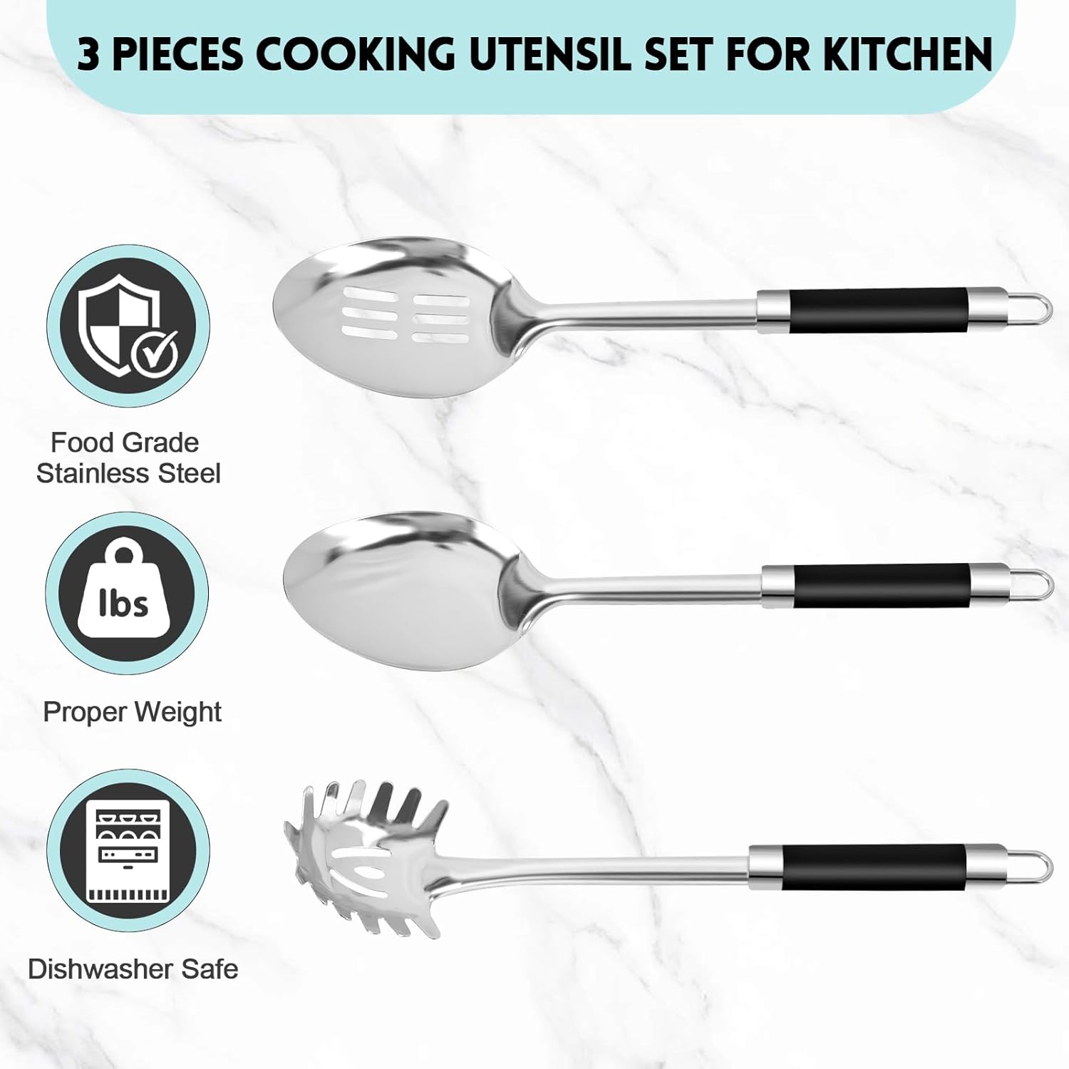 3-Piece,Stainless Steel Serving spoons set with Slotted Spoon, Serving Spoon and Spaghetti Spoon, kitchen cooking serving utensils set cooking spoon.