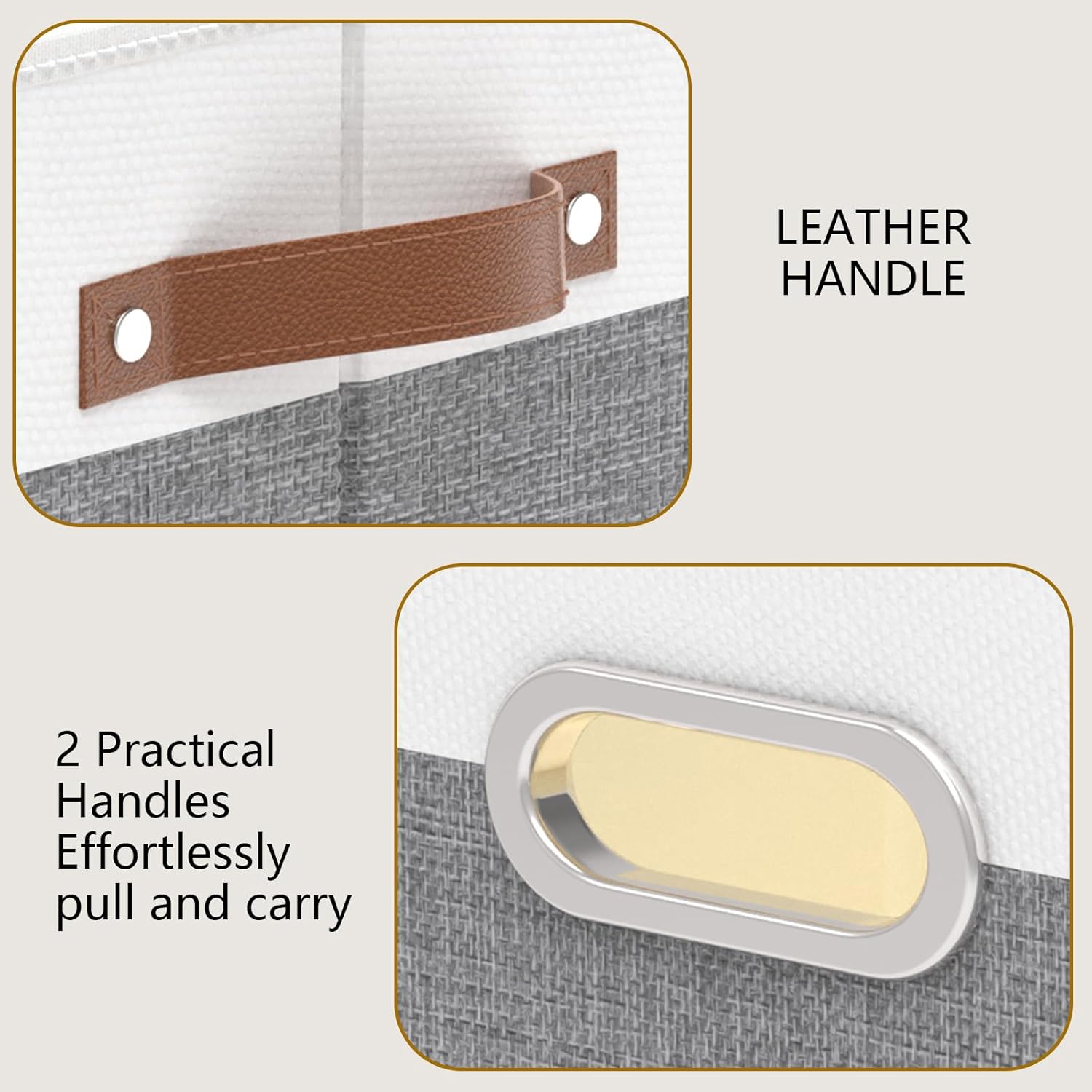 Yawinhe Fabric Storage Baskets, Foldable Closet Organizer for Shelves, Large Boxes with 3 Handles, Canvas Bins for Clothes, White/Grey, 12.99''Lx9.05''Wx7.87''H, 2-Pack