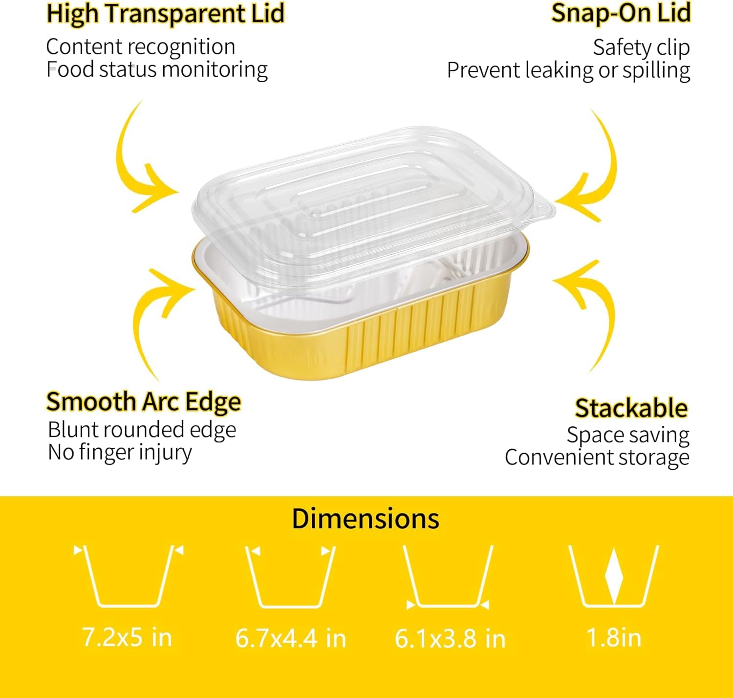 - 【High Quality Safety & Time Saving】JARDLITE gold aluminum foil pan is made of high quality aluminum material, which is 2 times harder than other silver aluminum foil pans, lightweight and sturdy, not easy to deform, high temperature resistant, and can withstand oven temperatures up to 600°F. Food grade plastic cover. Does not contain harmful substances, healthy and safe. Use these takeout containers to pack food and do all the work, saving you time!