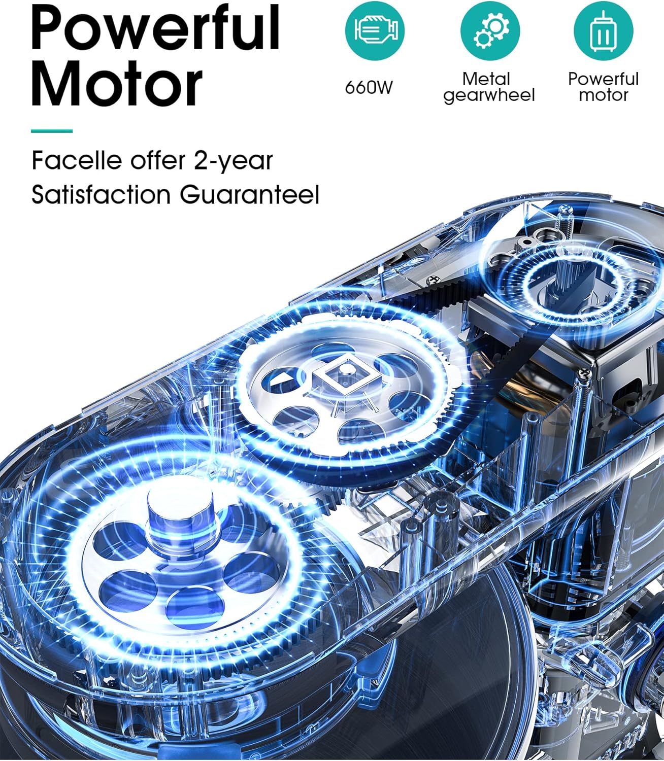 - 🍰【Good Choice and Best Service】Facelle mixers kitchen electric stand mixer with ETL certificate, over-heating and overload protection. Facelle professional kitchen stand mixer is your best choice. Please contact us at first if you have any questions, we will provide the professional customer service for you. Sincerely, we can offer a full 3-year quality guarantee and lifetime technical support.