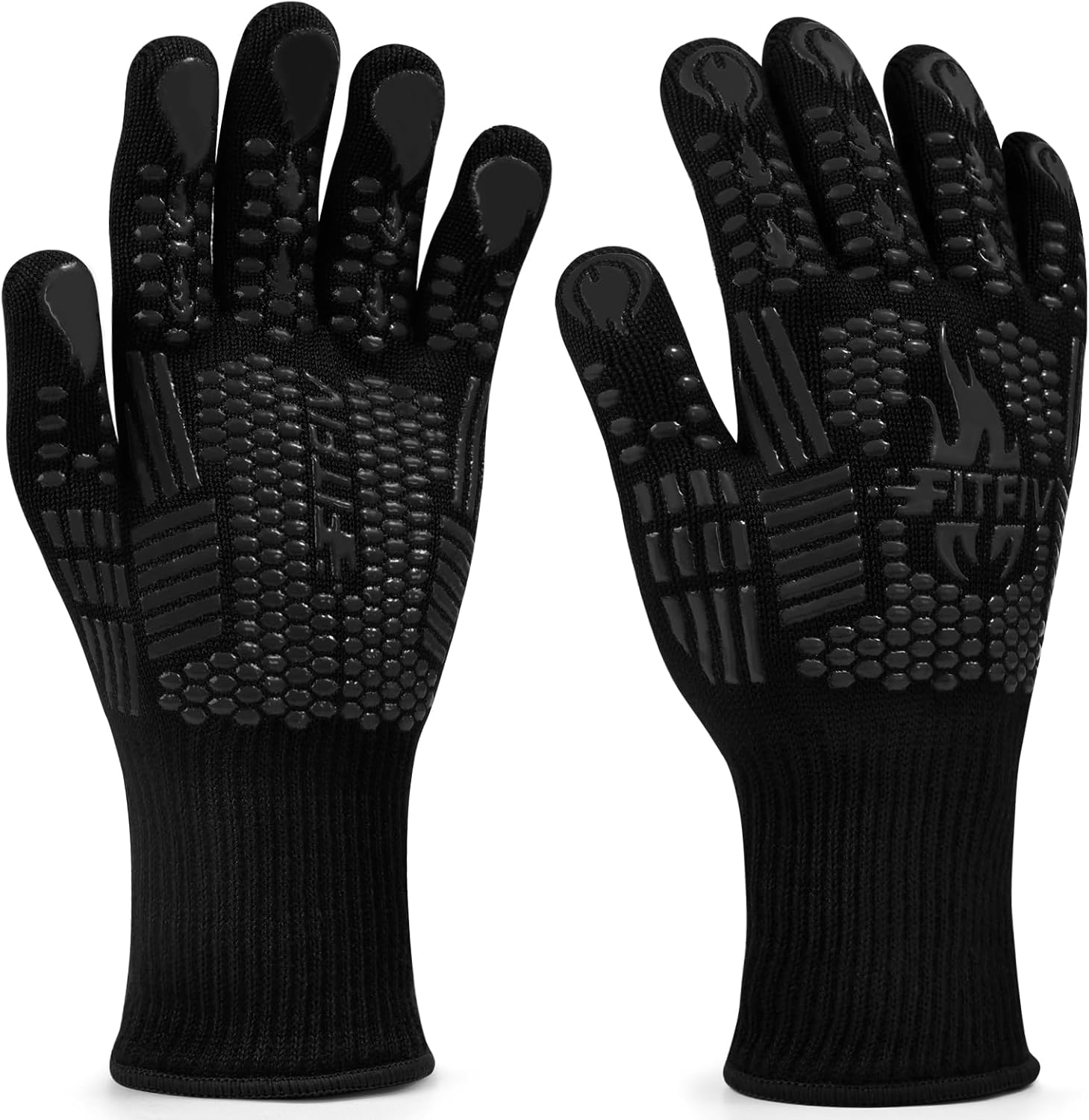 BBQ Gloves, Oven Gloves, 1472°F Extreme Heat Resistant Barbecue Gloves, Silicone Non-Slip Oven Mitts, Kitchen for Cooking, Grilling, and Baking (Black)