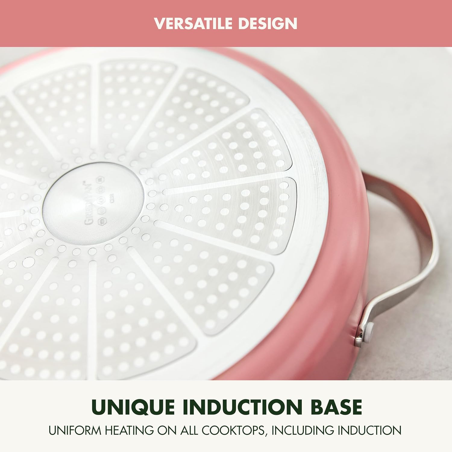 - REINFORCED WITH DIAMONDS: GreenPan's original diamond-infused nonstick coating offers remarkable durability, balanced heating, and effortless cleanup.