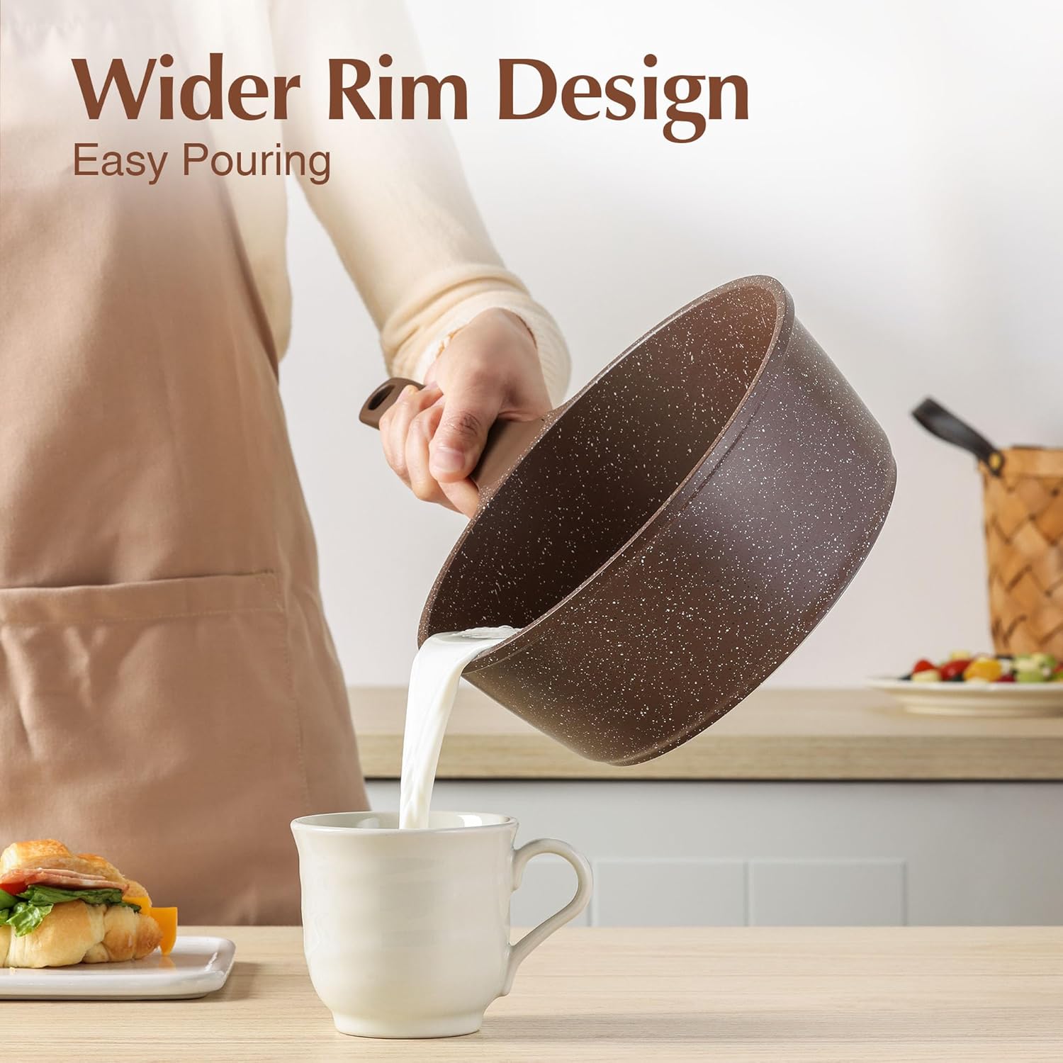 SENSARTE Saucepan Nonstick with Lid 2.0 Quarts Granite Coating Sauce Pot Small Kitchen Cooking Pot, Induction Comptable, Free of Intentionally Added PFOA