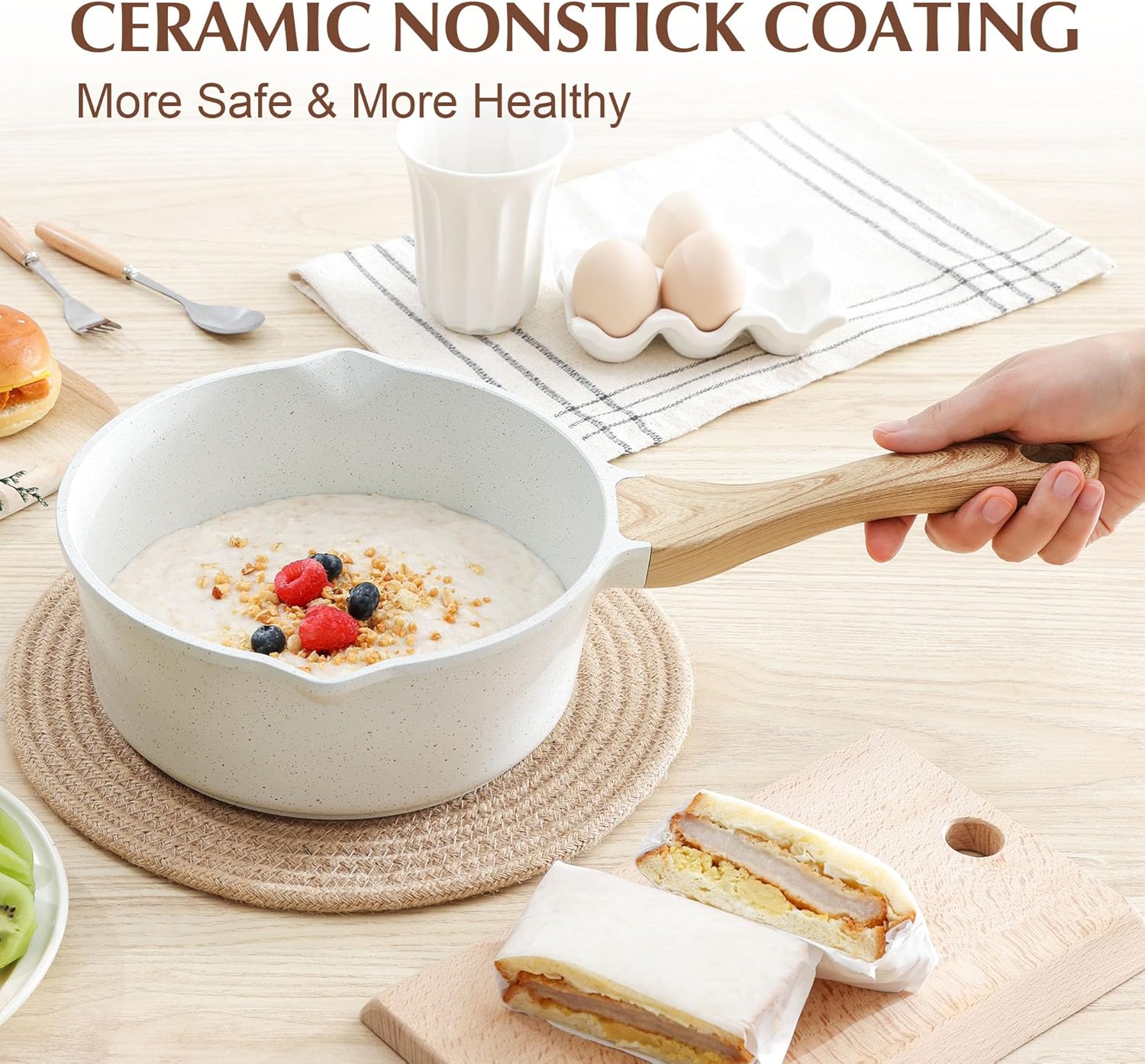 - Safe & Healthy - SENSARTE natural ceramic nonstick saucepan is free of intentionally added PFAS, PFOA, lead, and cadmium. Safe cooking for your family and healthier diet with less oil.