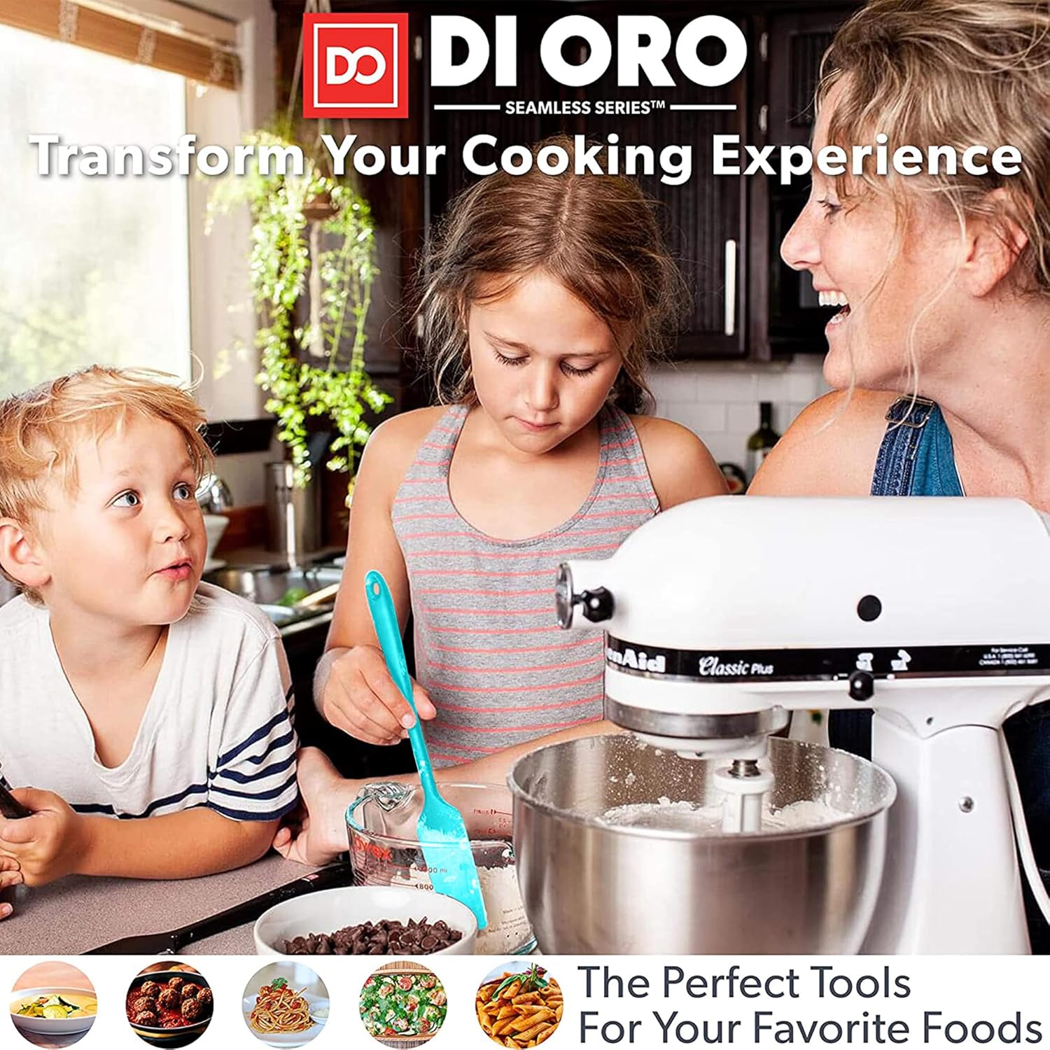 - CLEANS EASY, SEAMLESS ONE-PIECE DESIGN – You will be happy to know that your Award-Winning DI ORO Seamless Series Spatulas are dishwasher safe or can be quickly and effortlessly cleaned by hand. The one-piece seamless silicone design prevents buildup of food and grime, which allows for safe and healthy cooking.