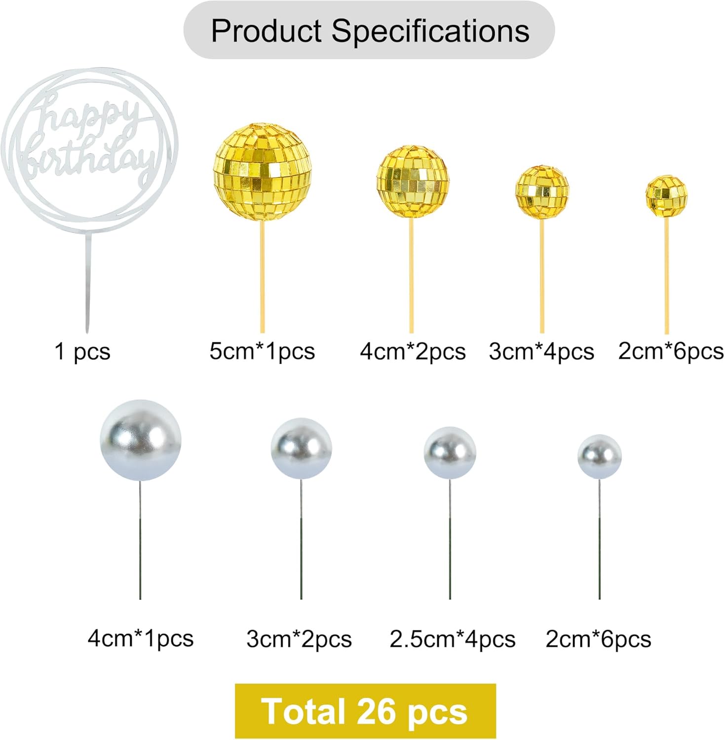 - 【Package】You will get 13 x gold disco balls cake toppers in different size, 13 x silver balls cake toppers in different size, and 1 x happy birthday cake topper, very exquisite and super valuable.
