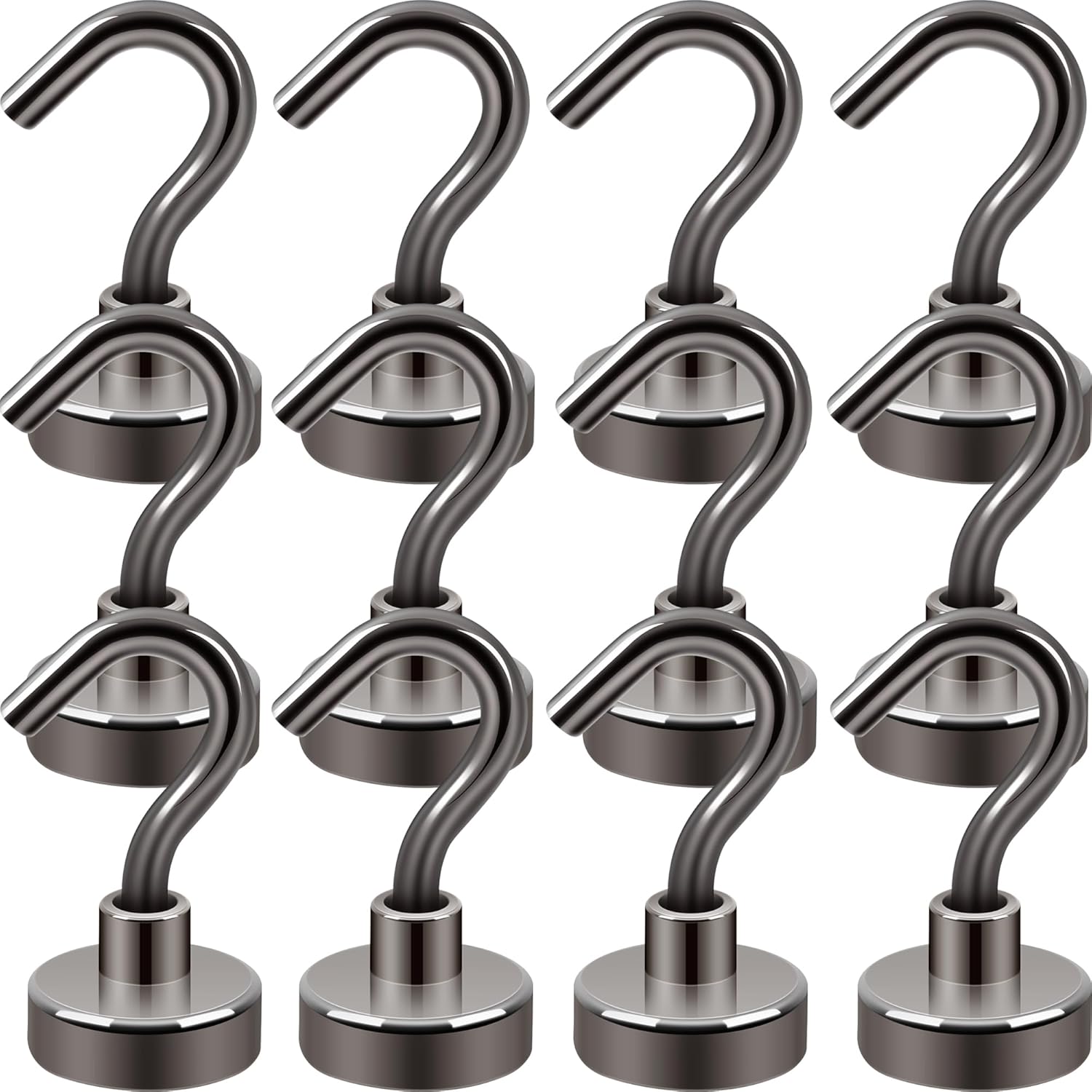 Neosmuk Magnetic Hooks, Cruise Ship Essentials, 30lb+ Heavy Duty Magnetic Hooks for Cruise Cabins, Refrigerator, Grill, Hanging, and Travel | Extra Strong Must-Haves Magnet Hook(Gunmetal,Pack of 12)