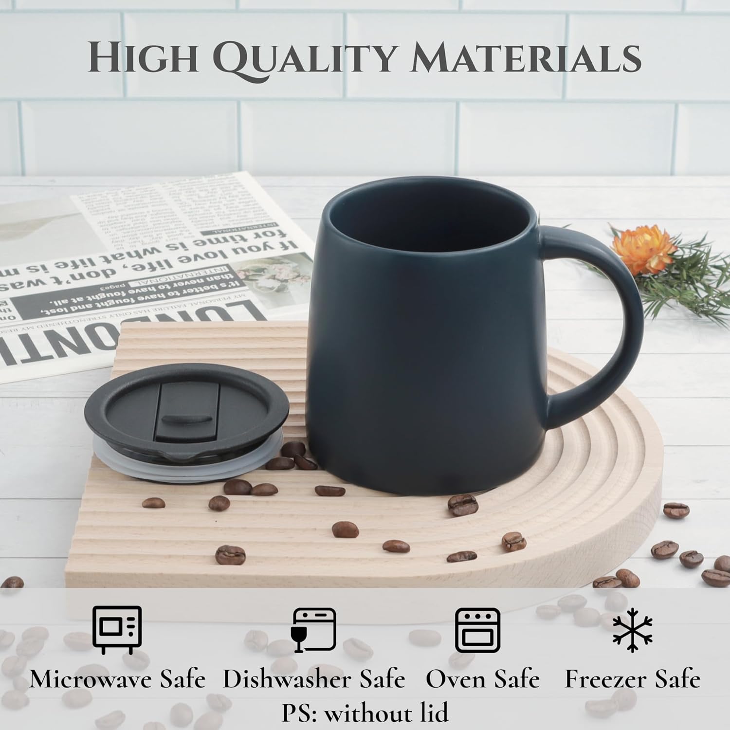 Classic Mug, 14 oz Large Coffee Mug with Handle, Ceramic Porcelain Tea Cup, Smooth Matte (Sliding Lid, Navy Blue)