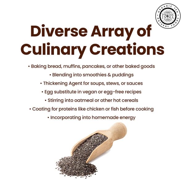 - Finest Quality Our Promise: Selecting Pride of India's black chia seed powder guarantees you the pinnacle of freshness and quality. We take pride in milling our chia seeds freshly, ensuring maximum flavor and nutritional potency. Sourced from premium black chia seeds, our powder retains all the essential nutrients. Perfect for gluten-free baking, cooking and thickening sauces, our flour offers a versatile addition to your kitchen repertoire.